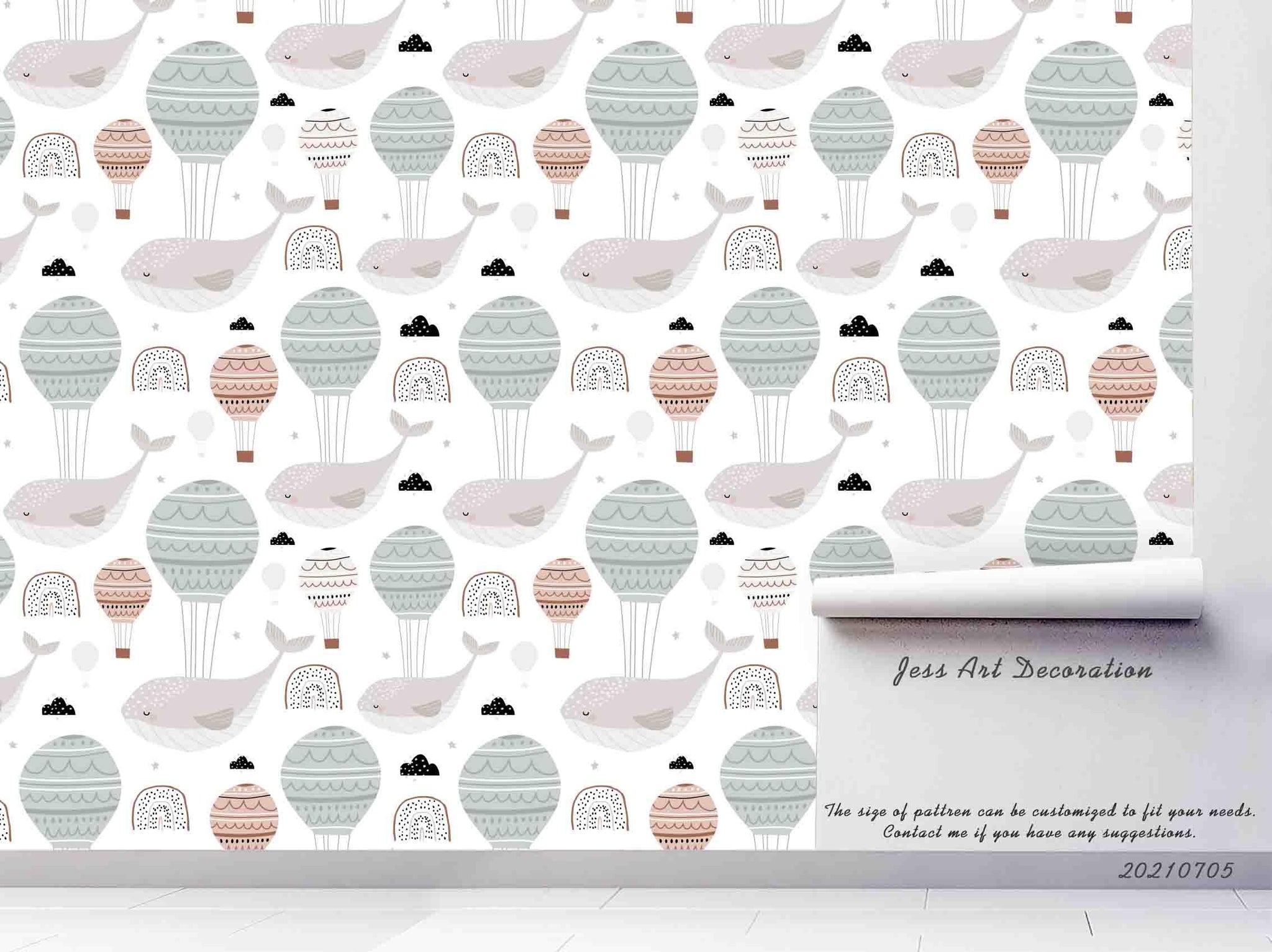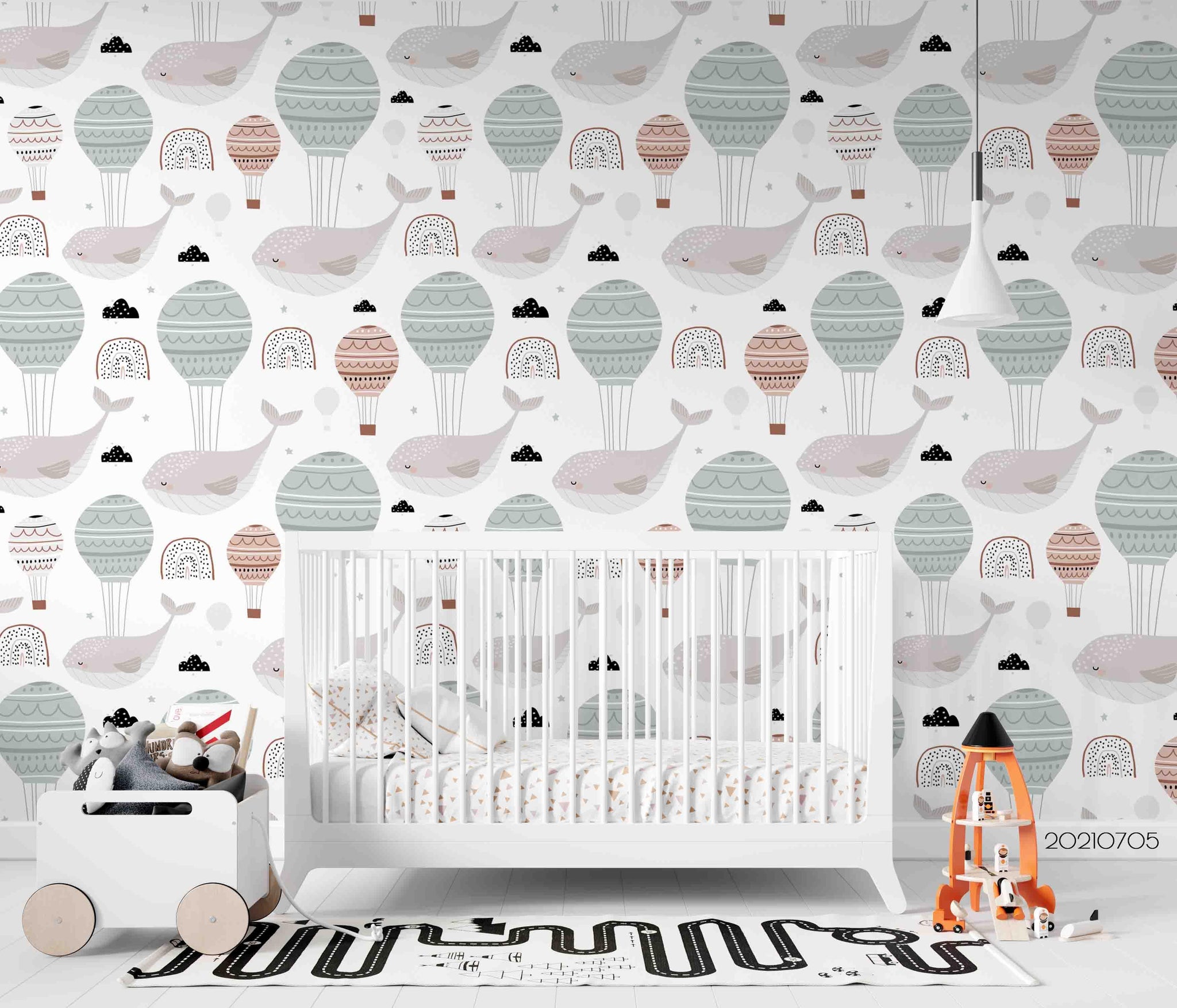 3D Cartoon Hot Air Balloon Dolphin Rainbow Wall Mural Wallpaper LQH 56