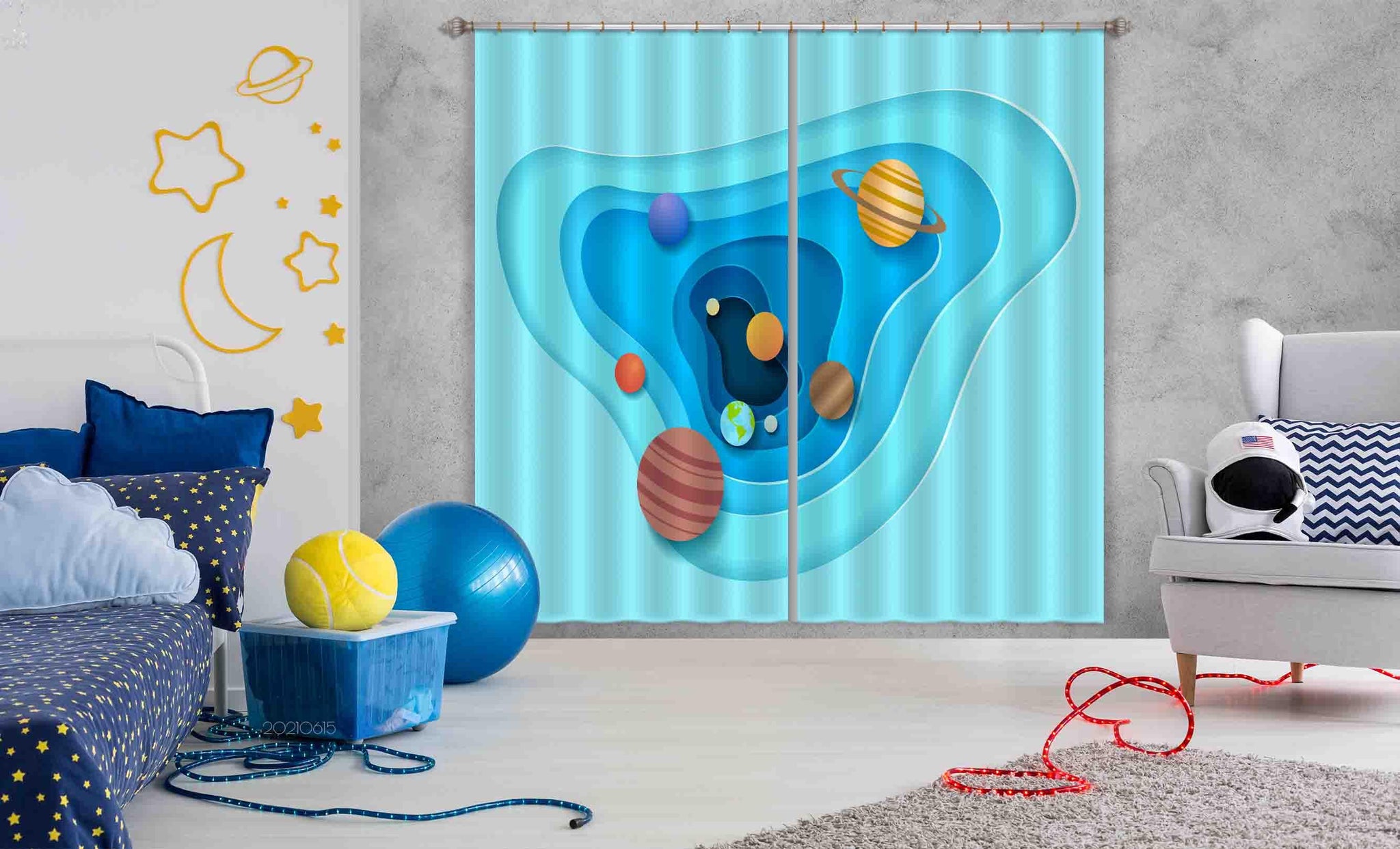 3D Cartoon Space Planet Curtains and Drapes LLL 450