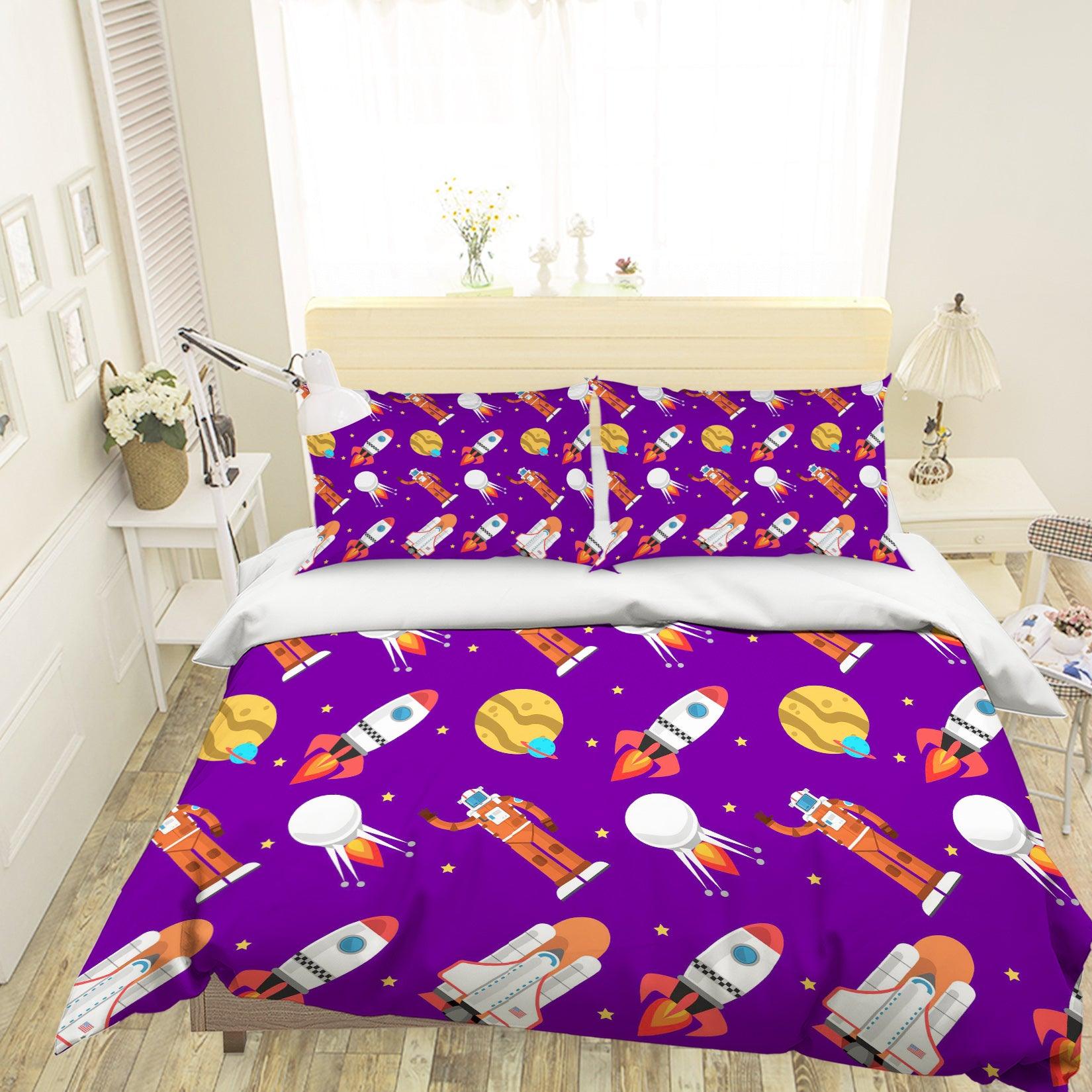 3D Cartoon Space Purple Quilt Cover Set Bedding Set Pillowcases 112