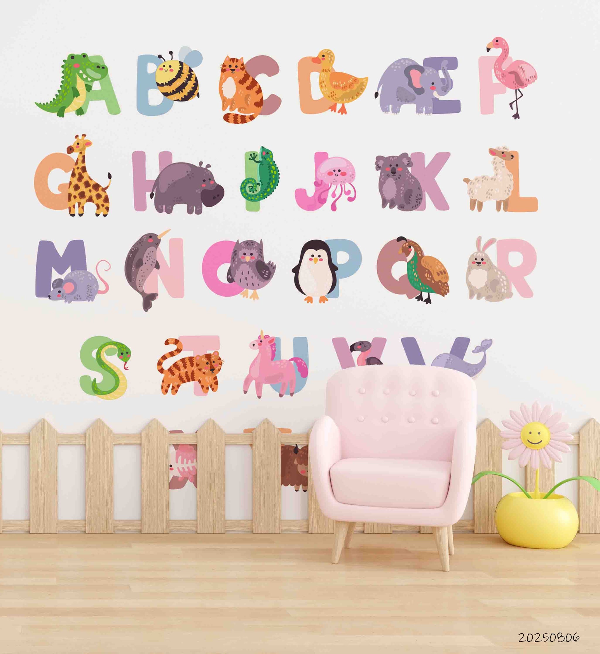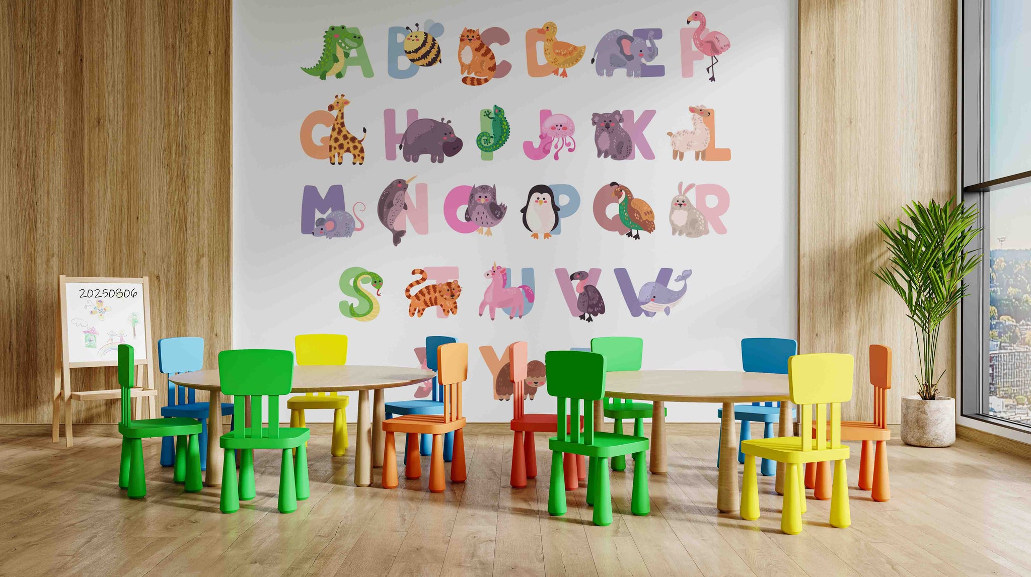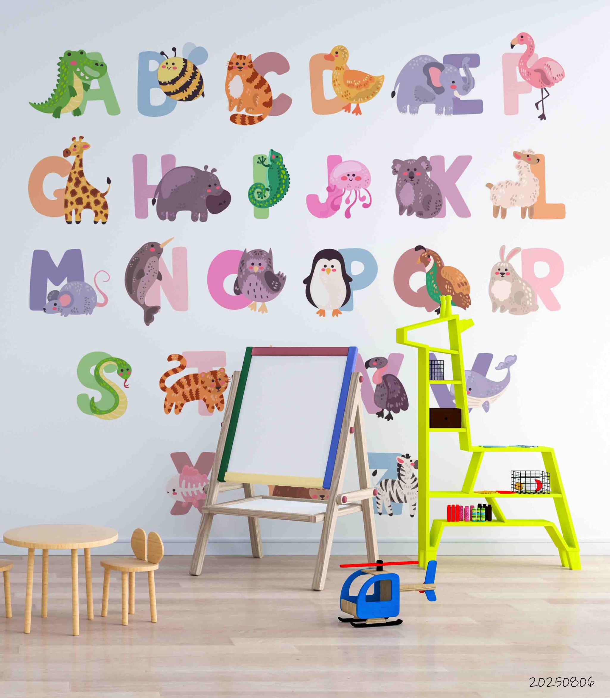 3D Childcare Nursery School Cartoon Kids Animals Letters Wall Mural Wallpaper JN 64
