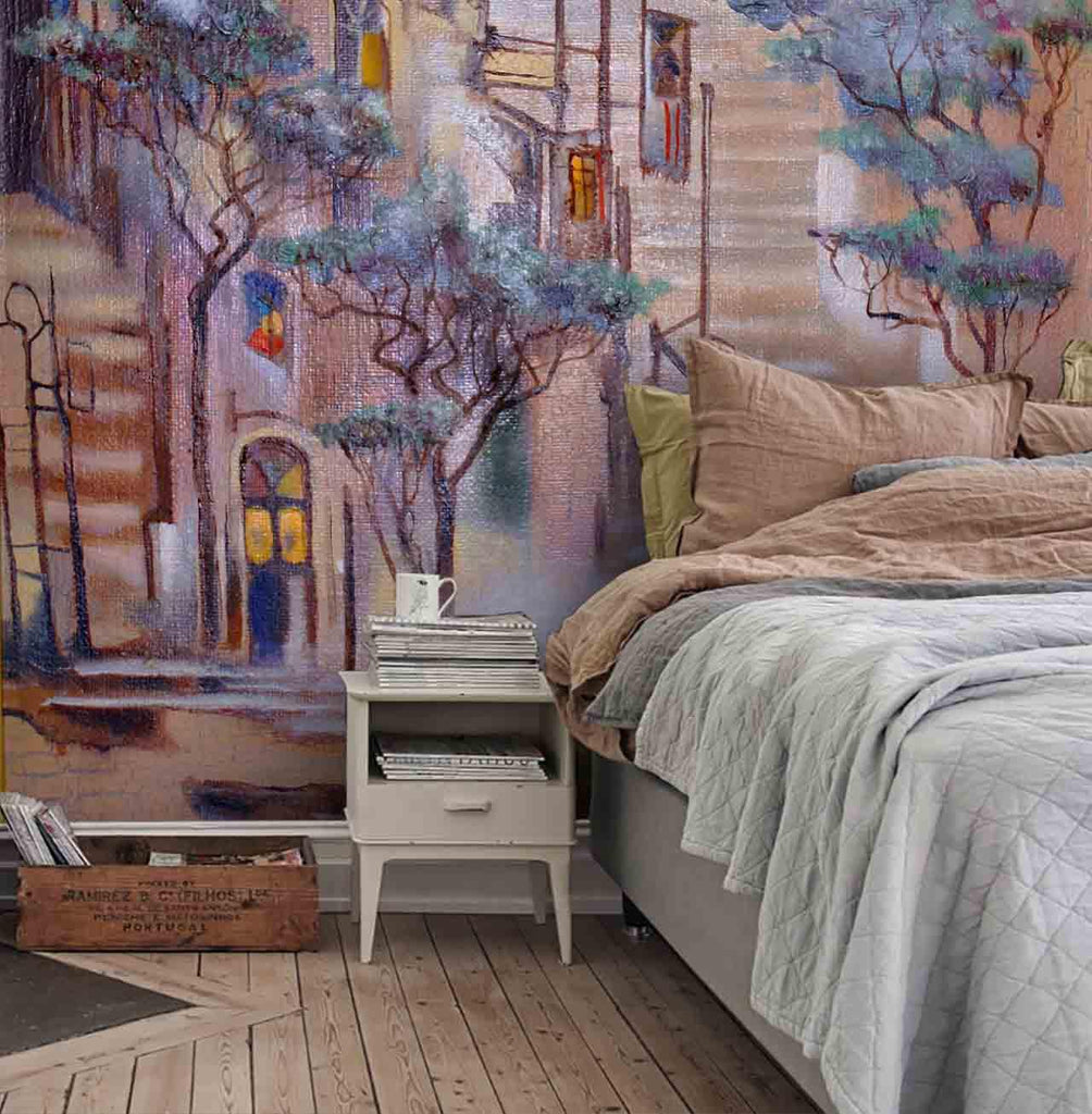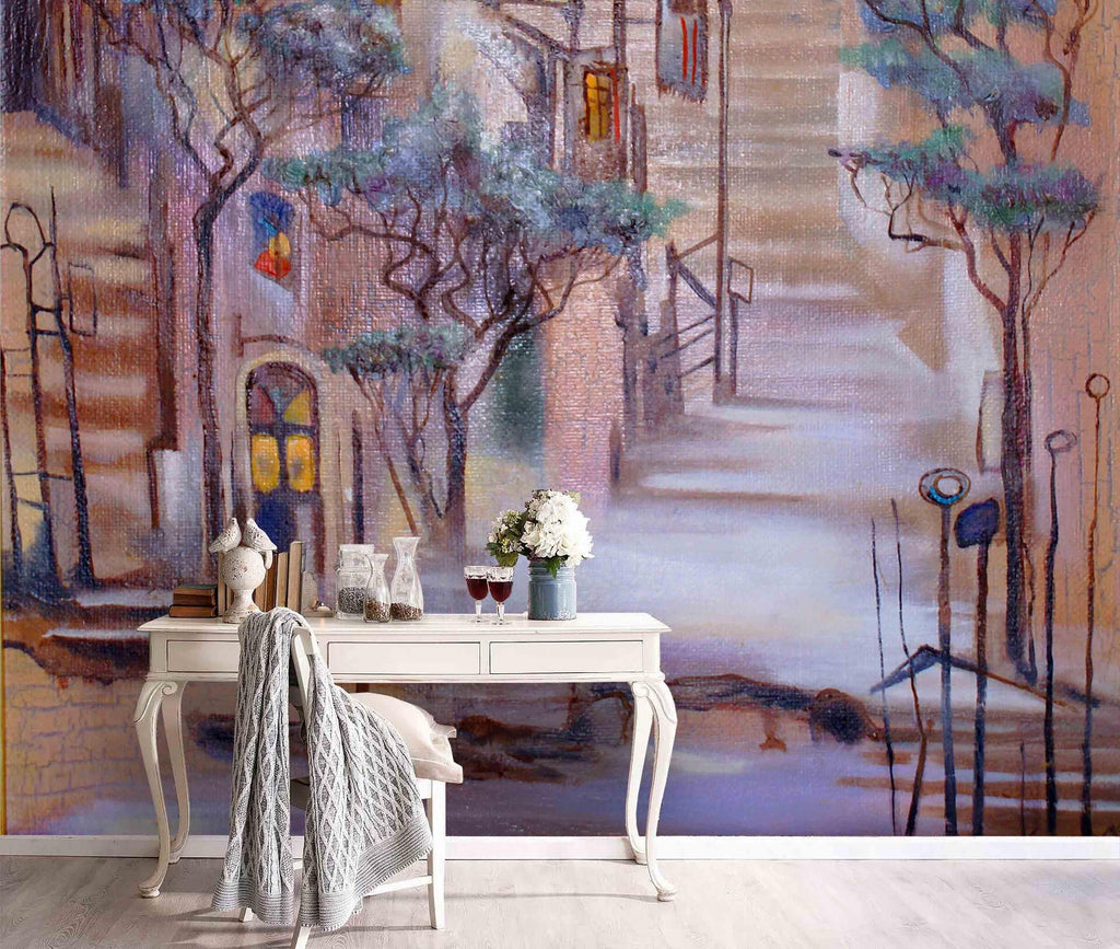 3D City Street Building Tree Wall Mural Wallpaper 08