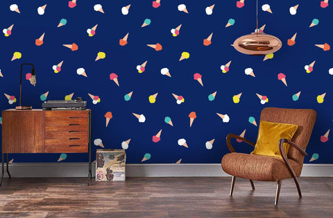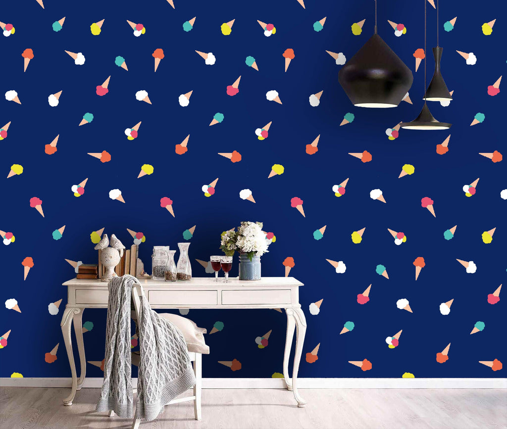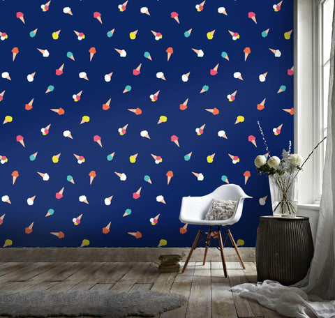 3D Color Ice Cream Icon Blue Background Wall Mural Wallpaper 138