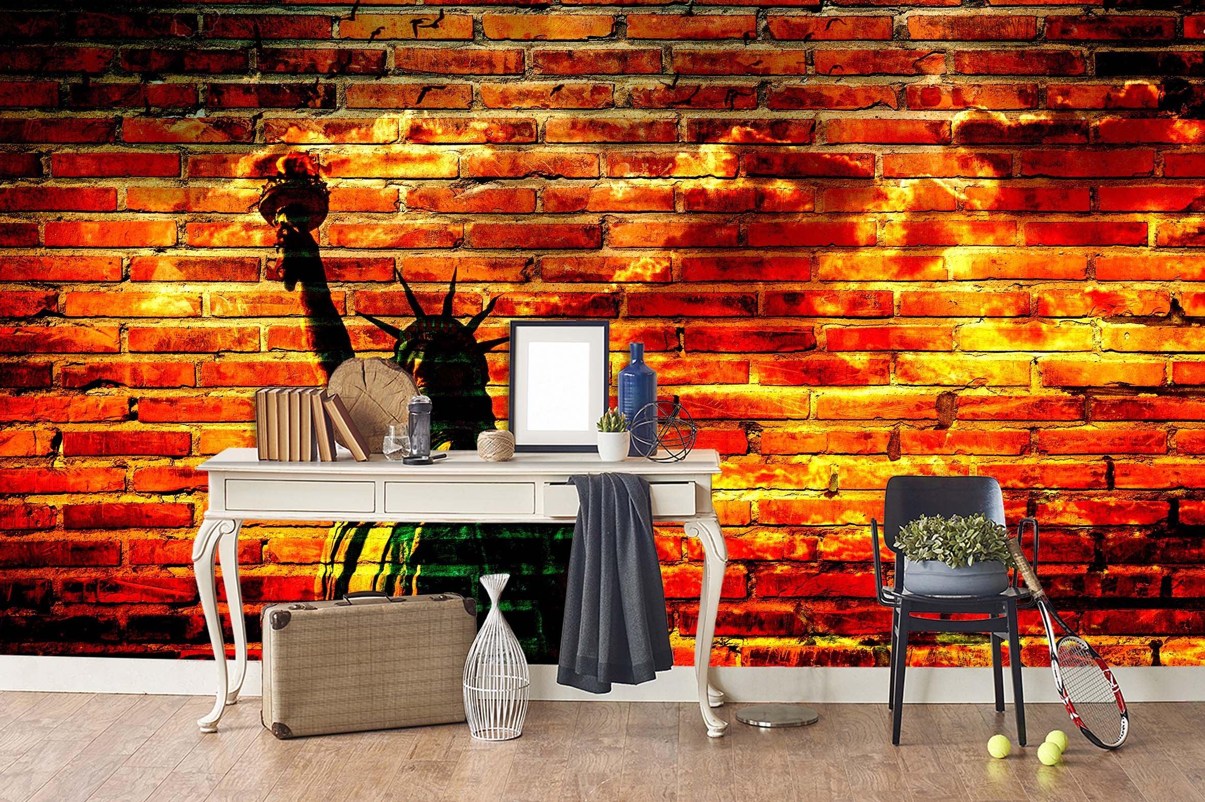 3D Dark Red Brick Goddess Of Liberty Wall Mural Wallpaper 142