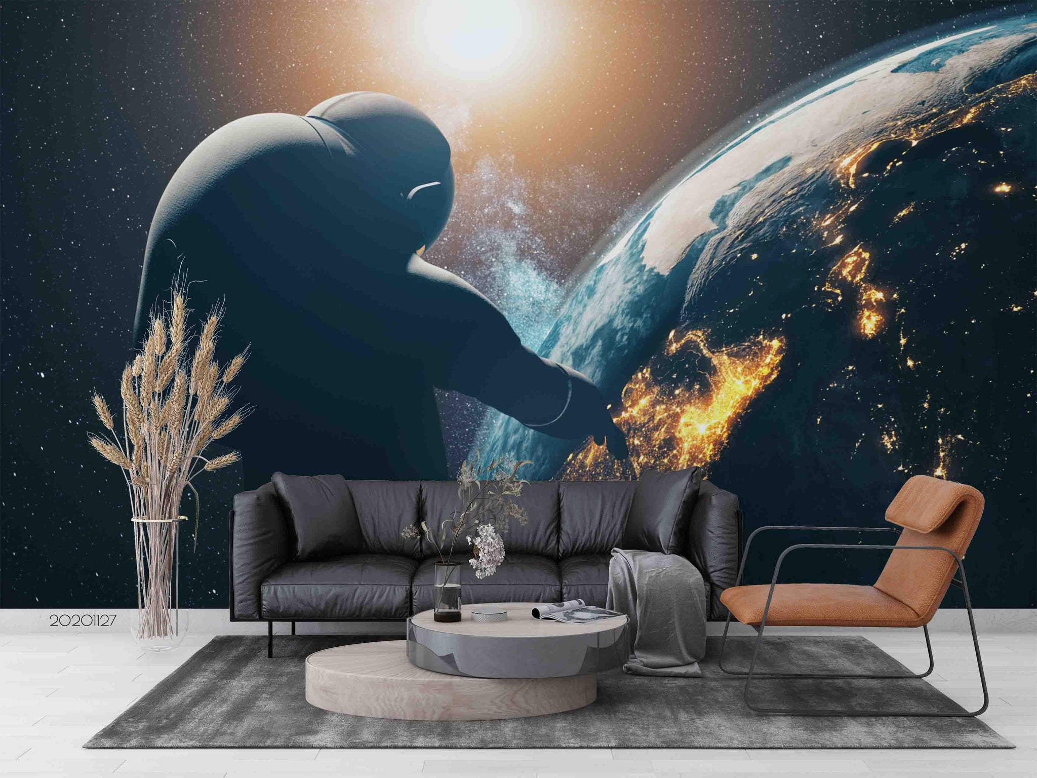 3D Dark Space Silhouette Astronaut Earth Planet Wall Mural Wallpaper LXL