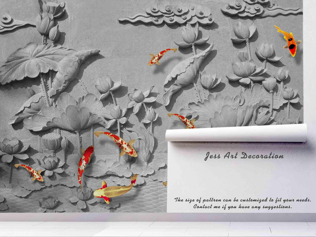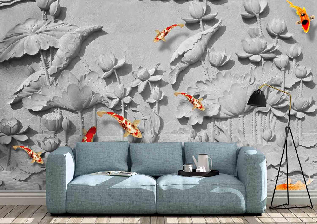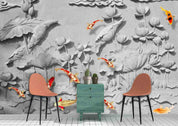 3D Emboss Lotus Carp Wall Mural Wallpaper 21