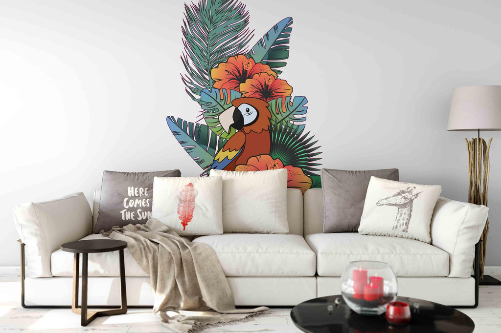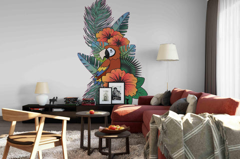3D Floral Leaves Parrot Wall Mural Wallpaper 54
