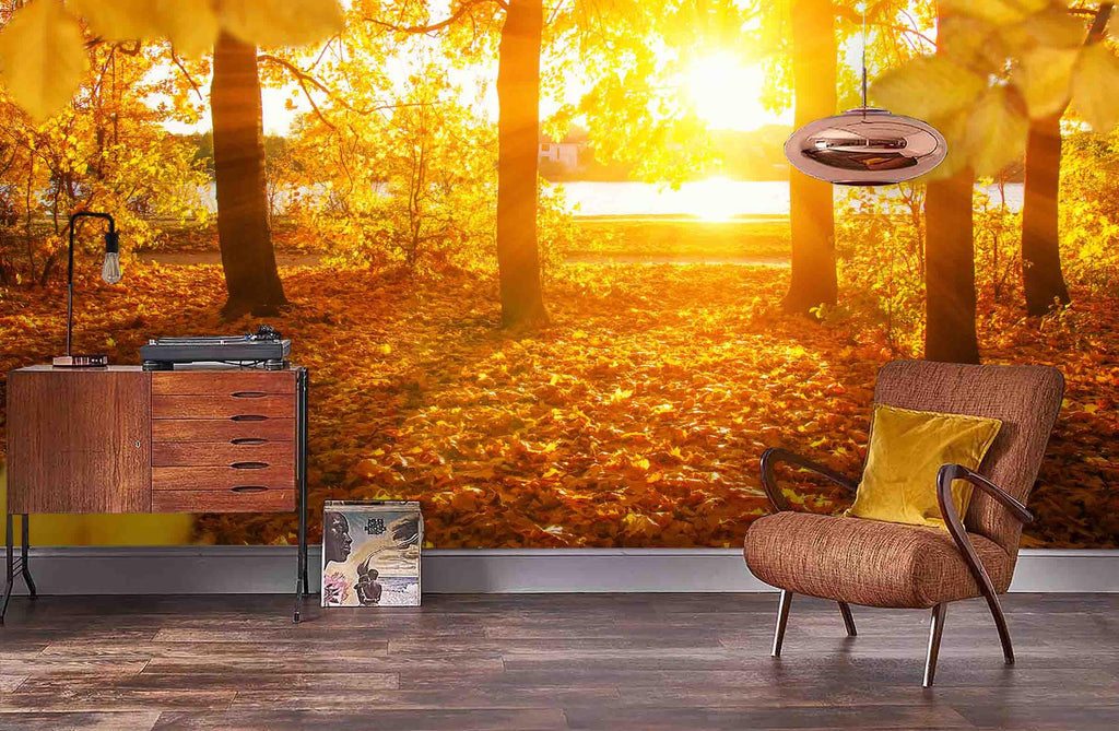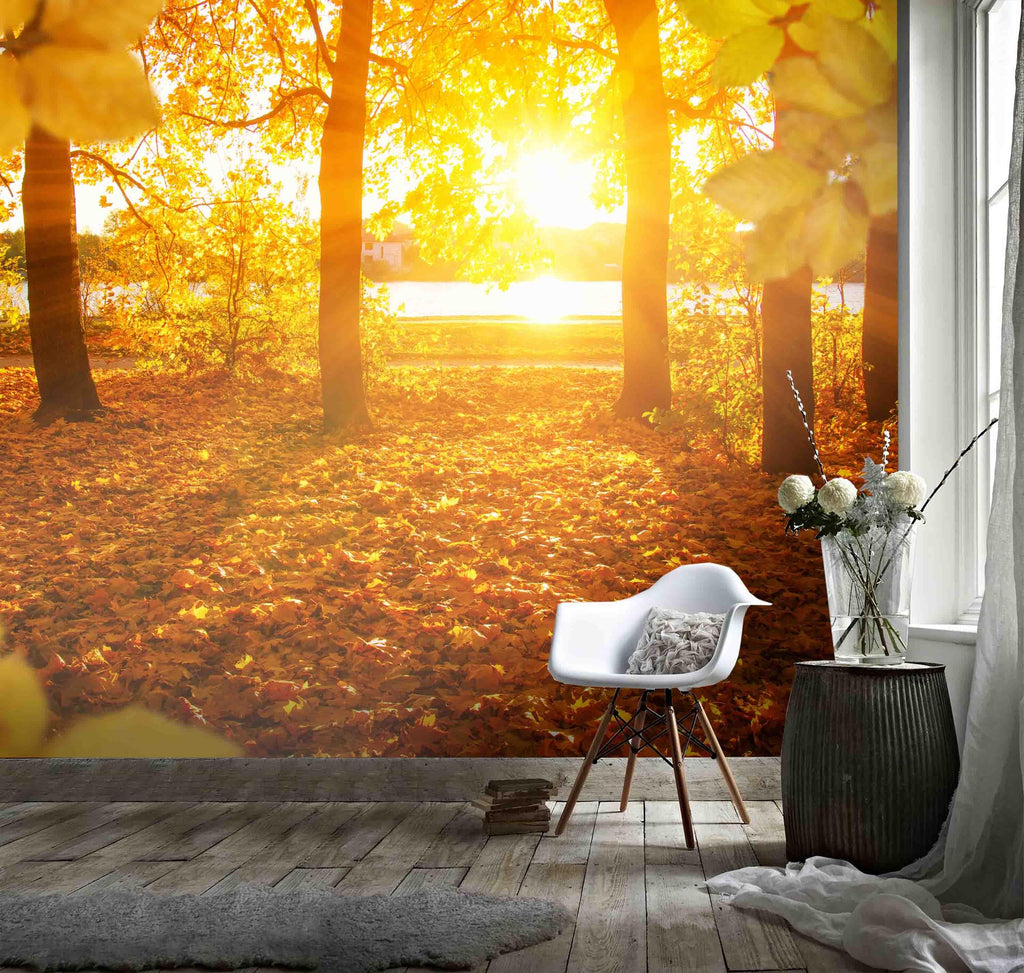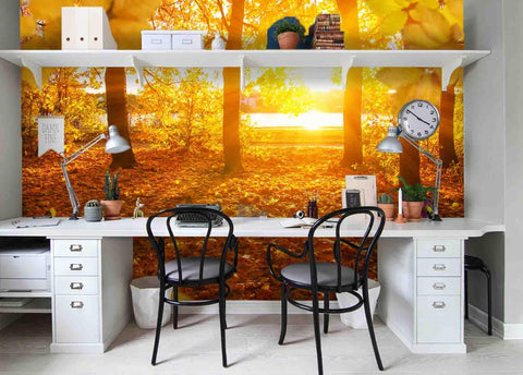 3D Forest Sunlight Late Autumn Wall Mural Wallpaper 90