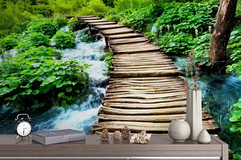 3D Forest Water Wood Bridge Mural Removable Wallpaper,Peel & stick Wall Mural, Wall Art,Wall Decal,Kids,Nursery,Wall Sticker,Jess Art 42