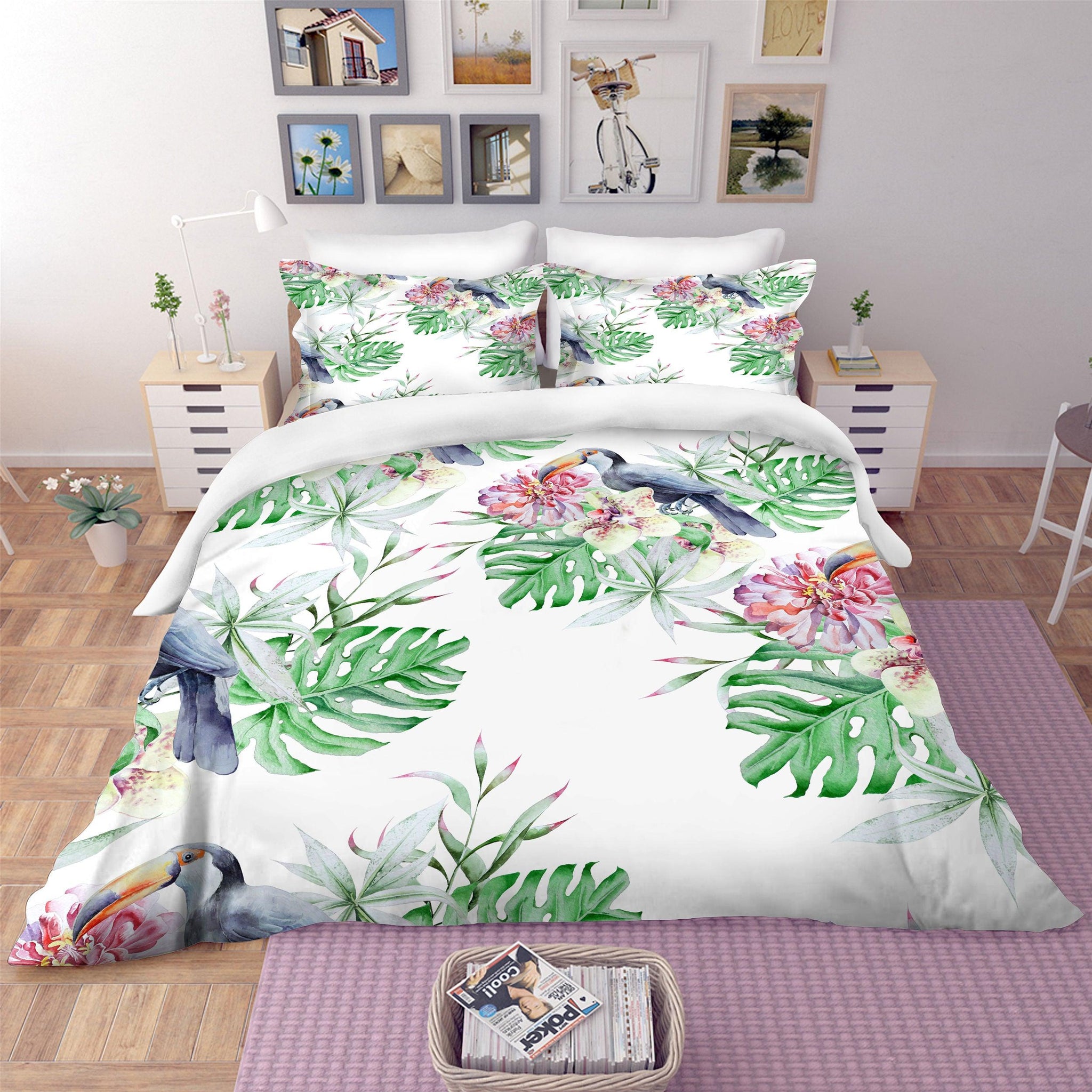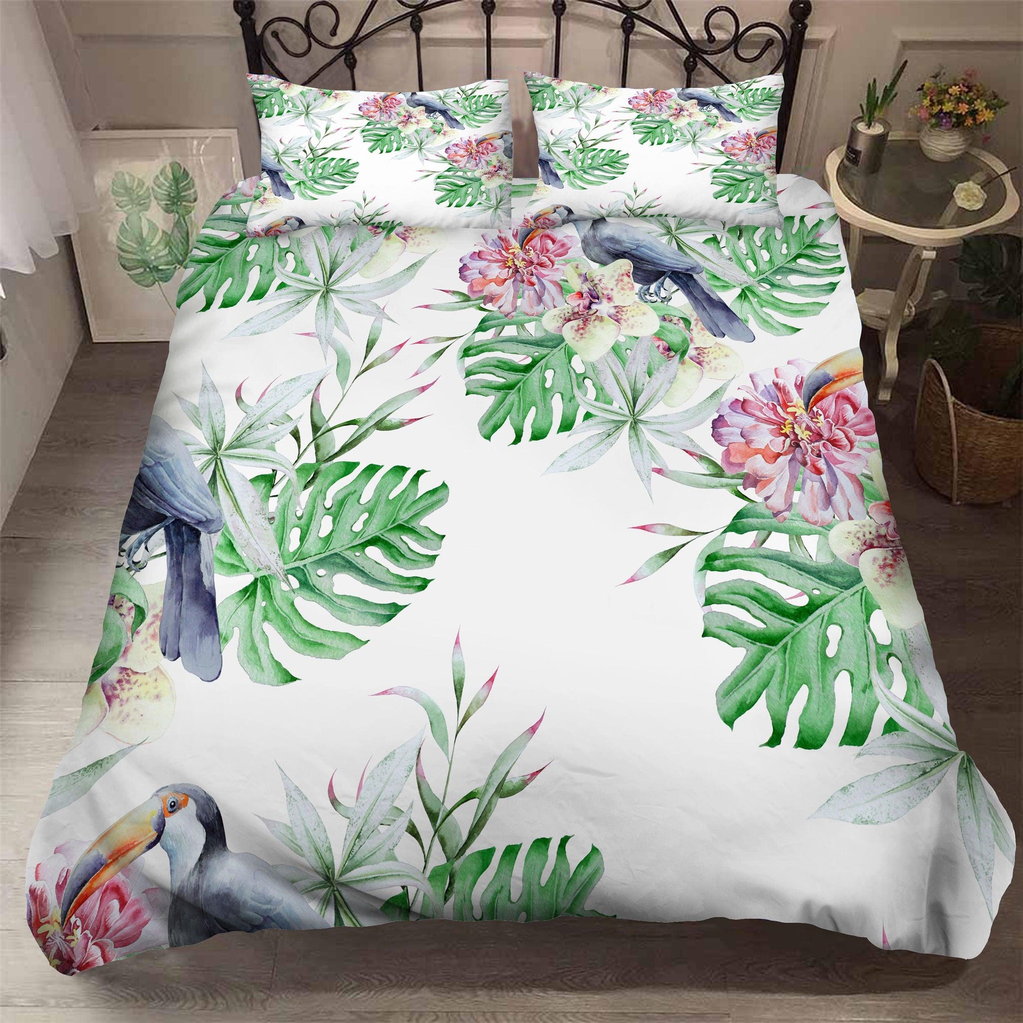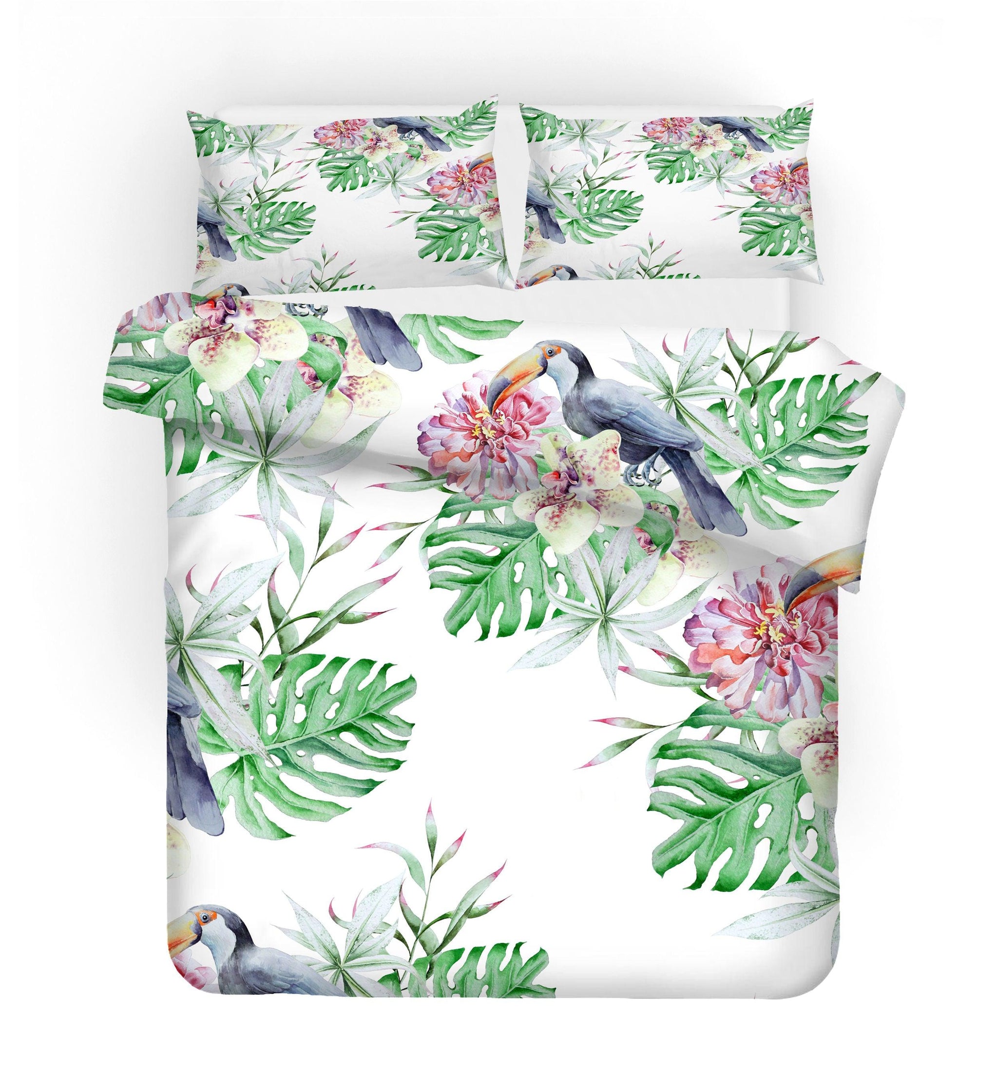 3D Green Leaves Toucan Quilt Cover Set Bedding Set Pillowcases 17
