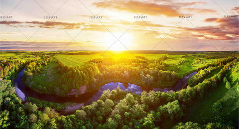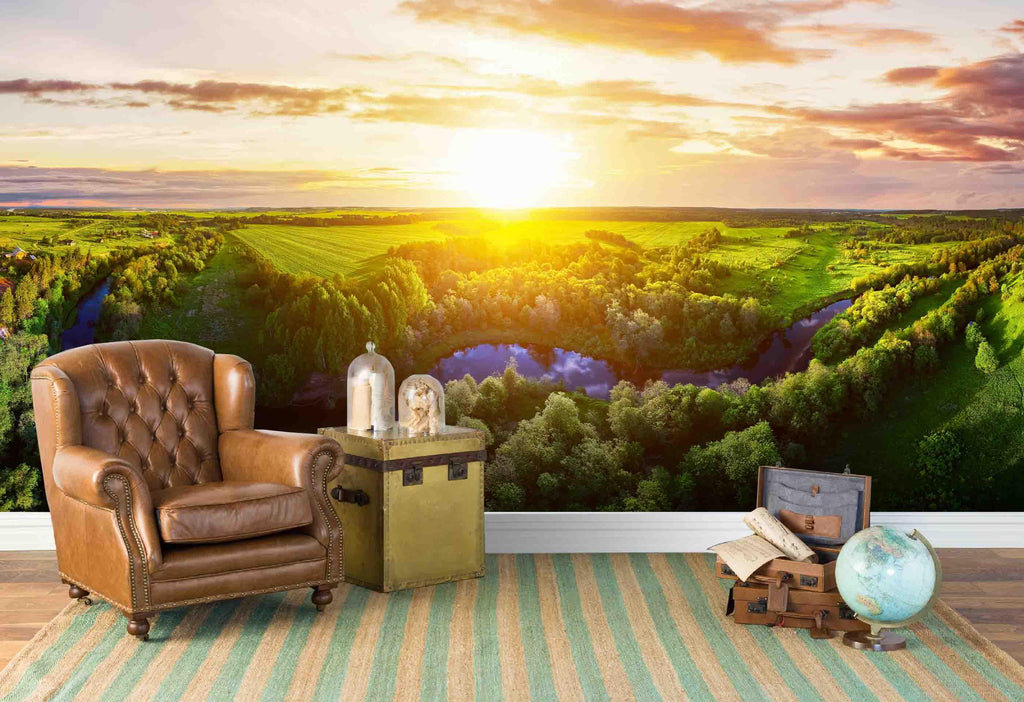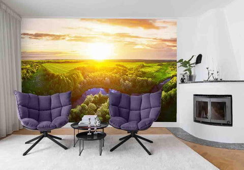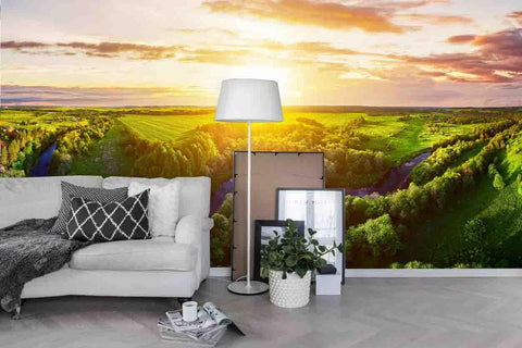3D Green Plain Sunrise Wall Mural Wallpaper 56