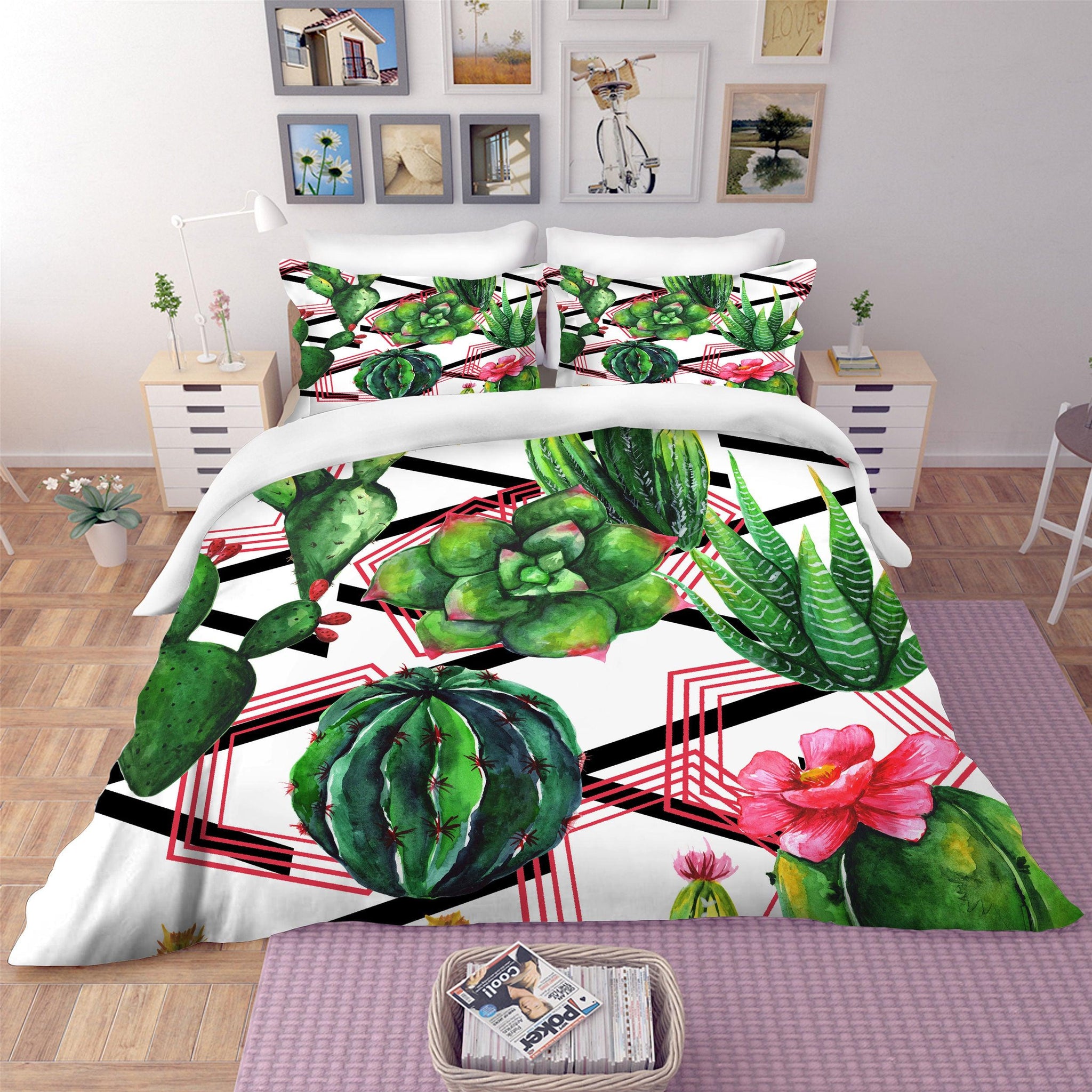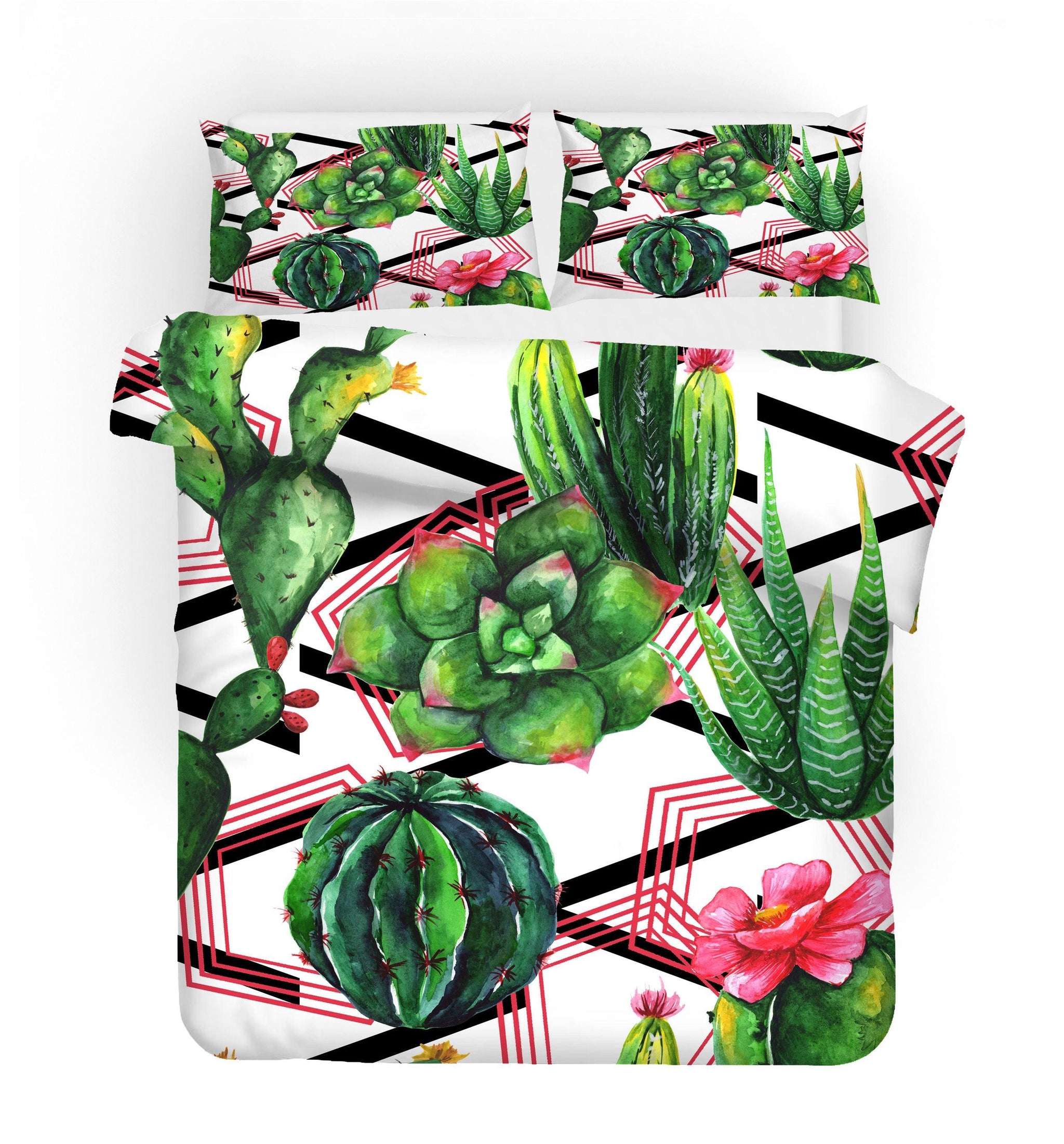 3D Green Succulents Quilt Cover Set Bedding Set Pillowcases 19