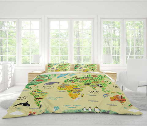 3D Green-tones, World map Bedding Set Quilt Cover Quilt Duvet Cover ,Pillowcases Personalized Bedding,Queen, King ,Full, Double 3 Pcs