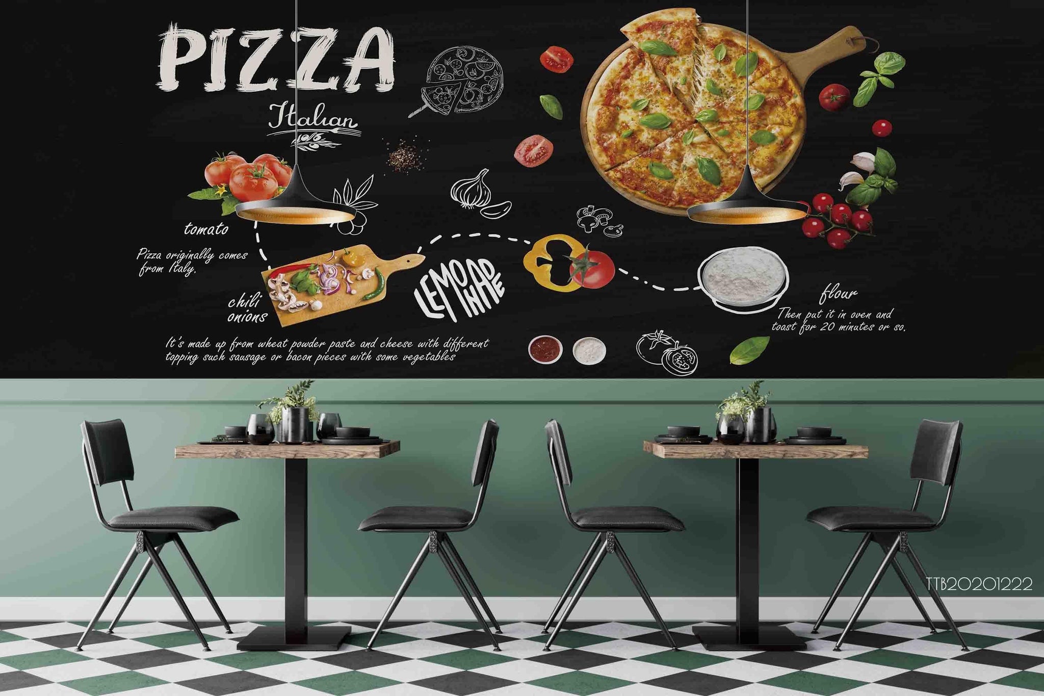 3D Hand Drawn Food Pizza Wall Mural Wallpaper LQH 94