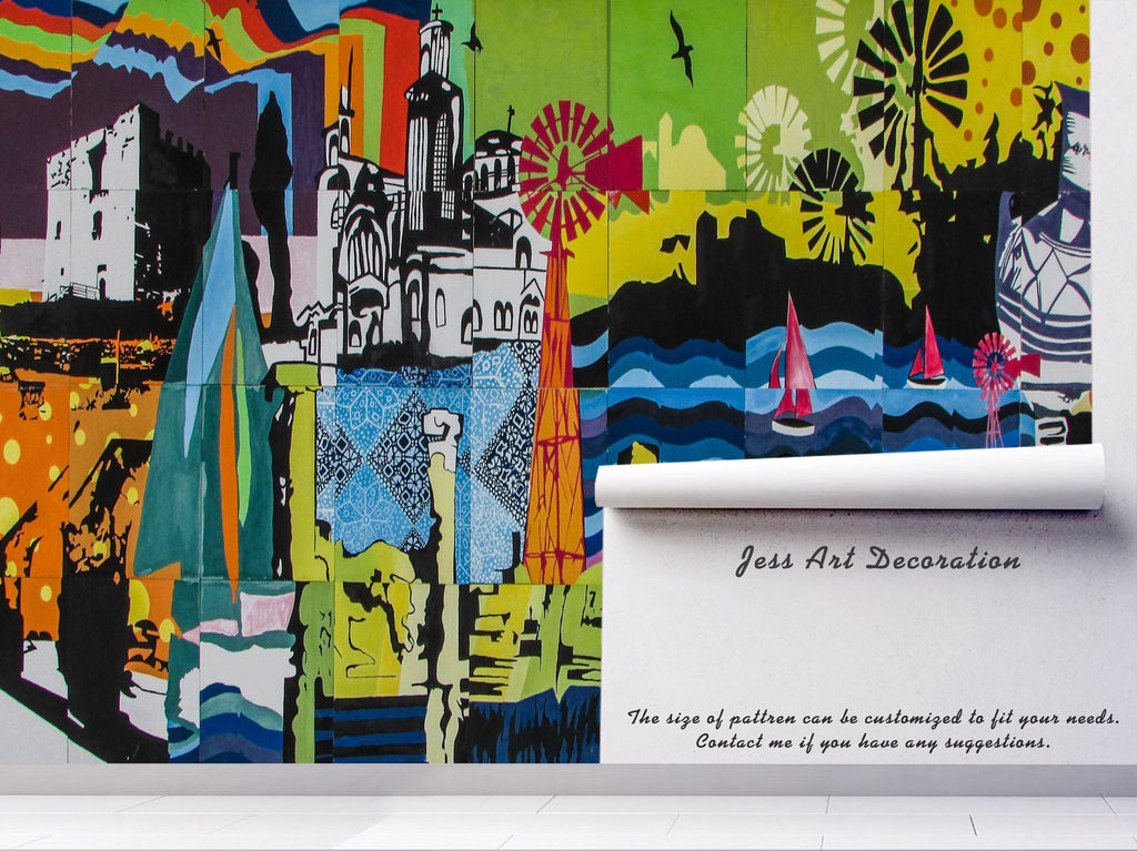 3D Hand Paint Abstract Boat City Wall Mural Wallpaper 167