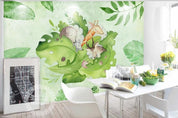 3D Hand Painted Leaf Animals Wall Mural Wallpaper 144