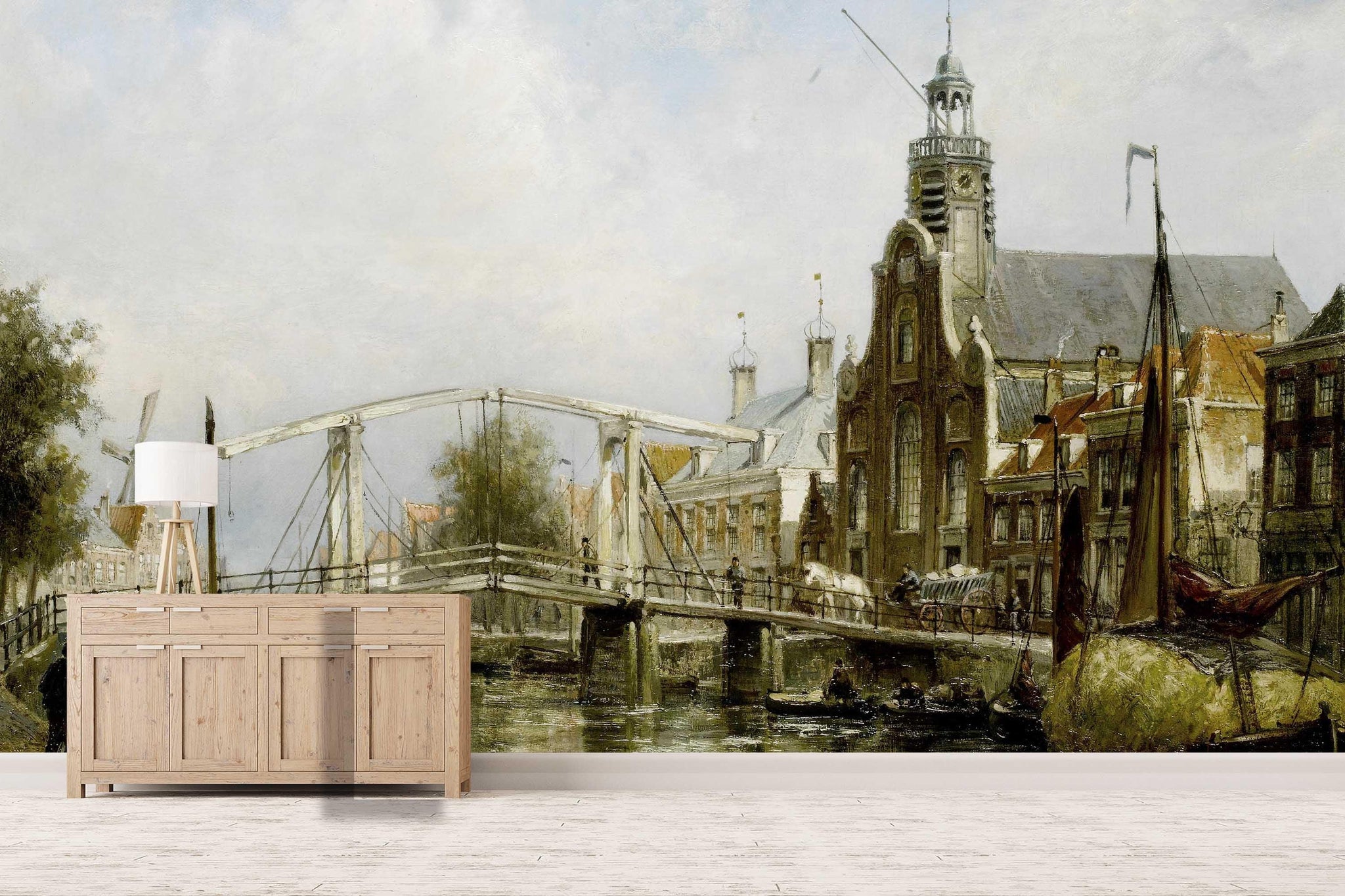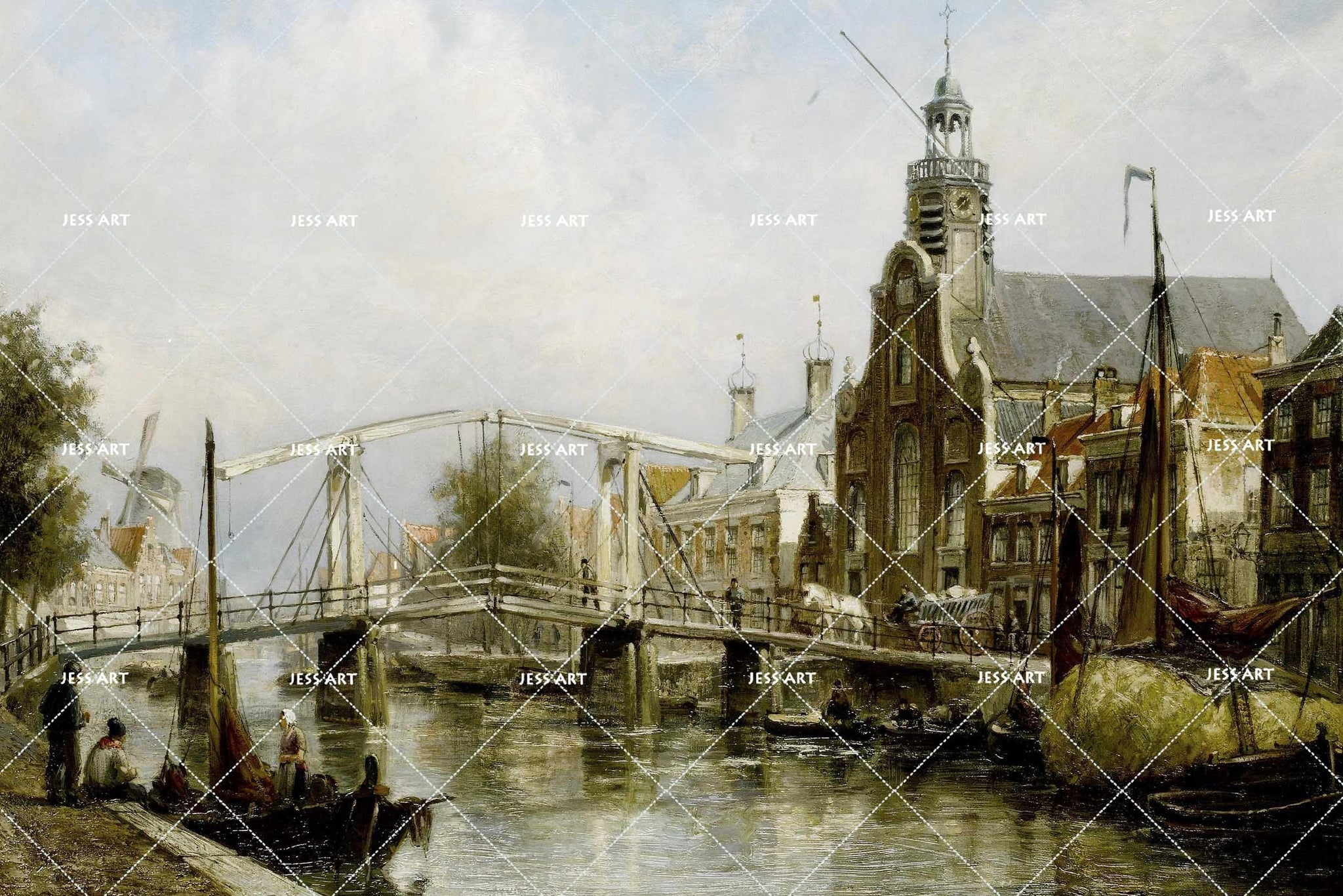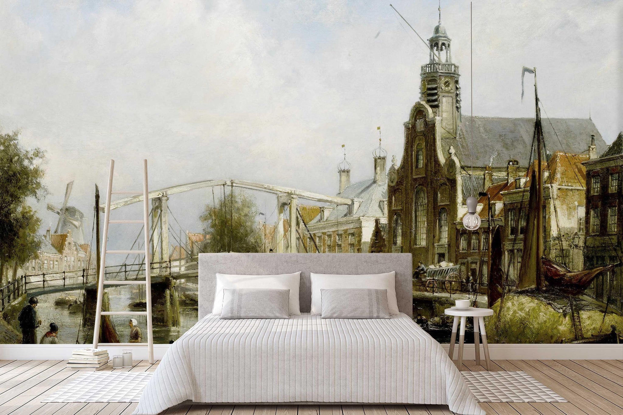 3D house bridge landscape oil painting wall mural wallpaper 1