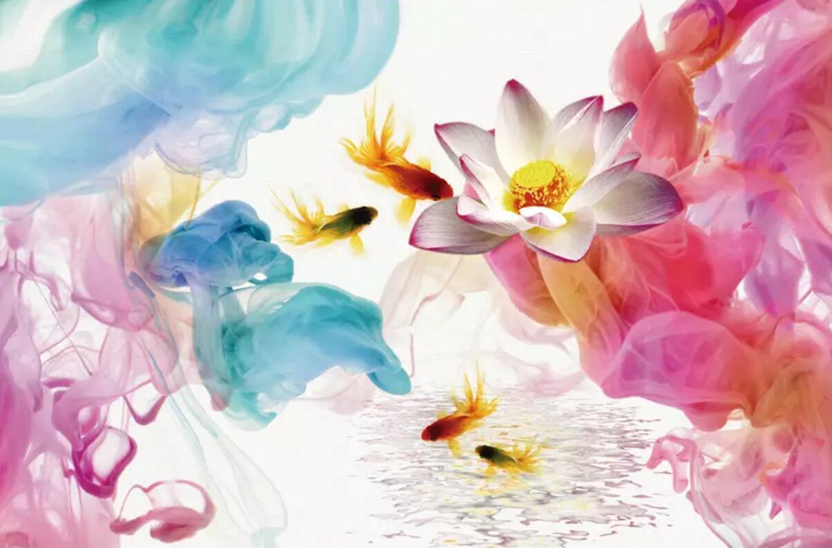 3D lotus watercolor goldfish wall mural wallpaper 136