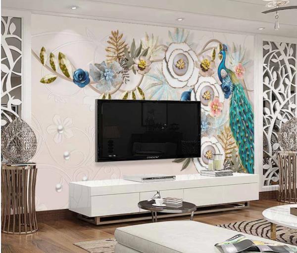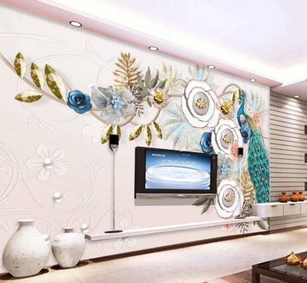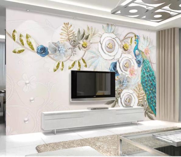 3D Modern Simplicity Retro Peacock Flowers Wall Mural Wallpaperpe 320
