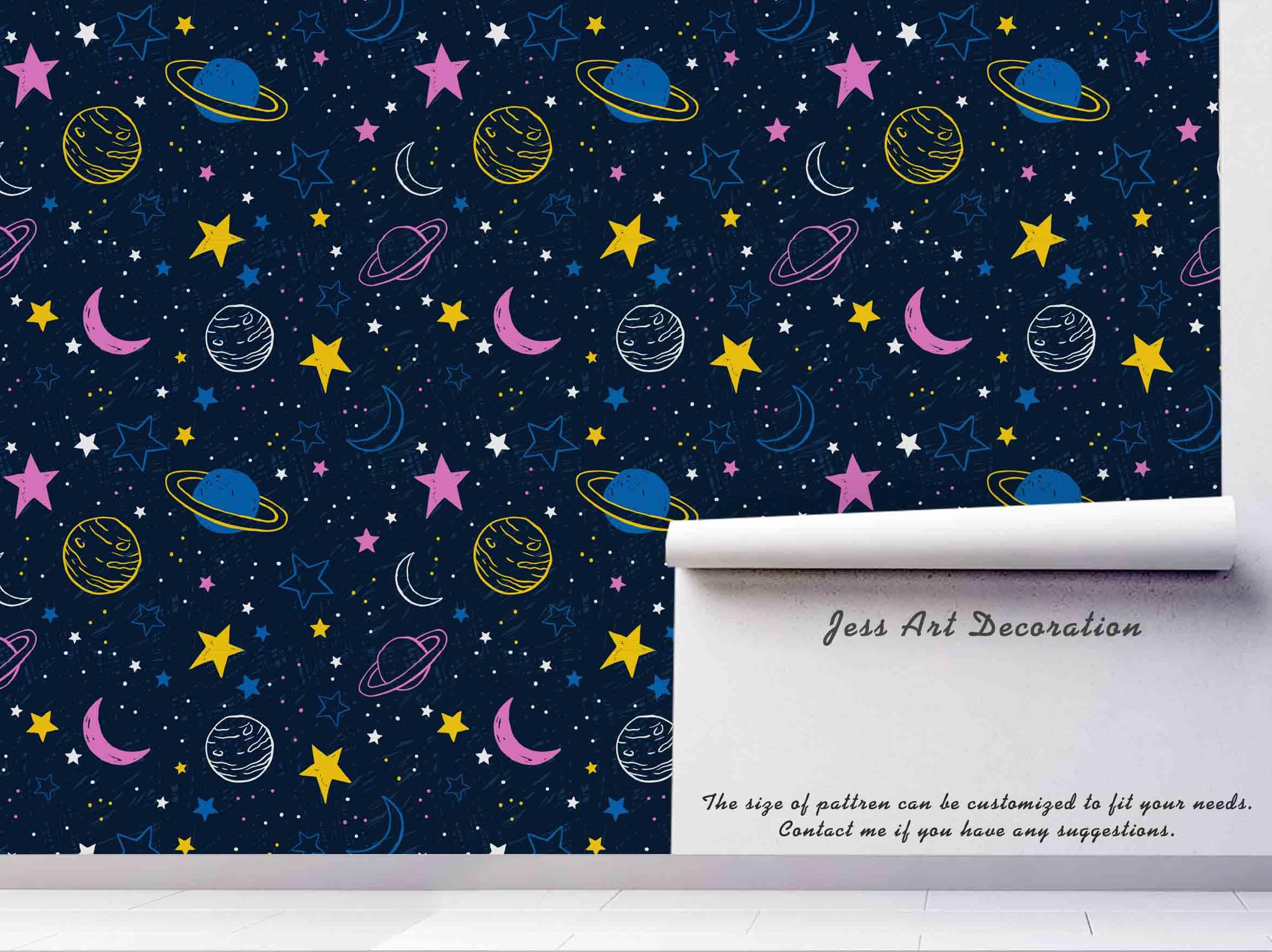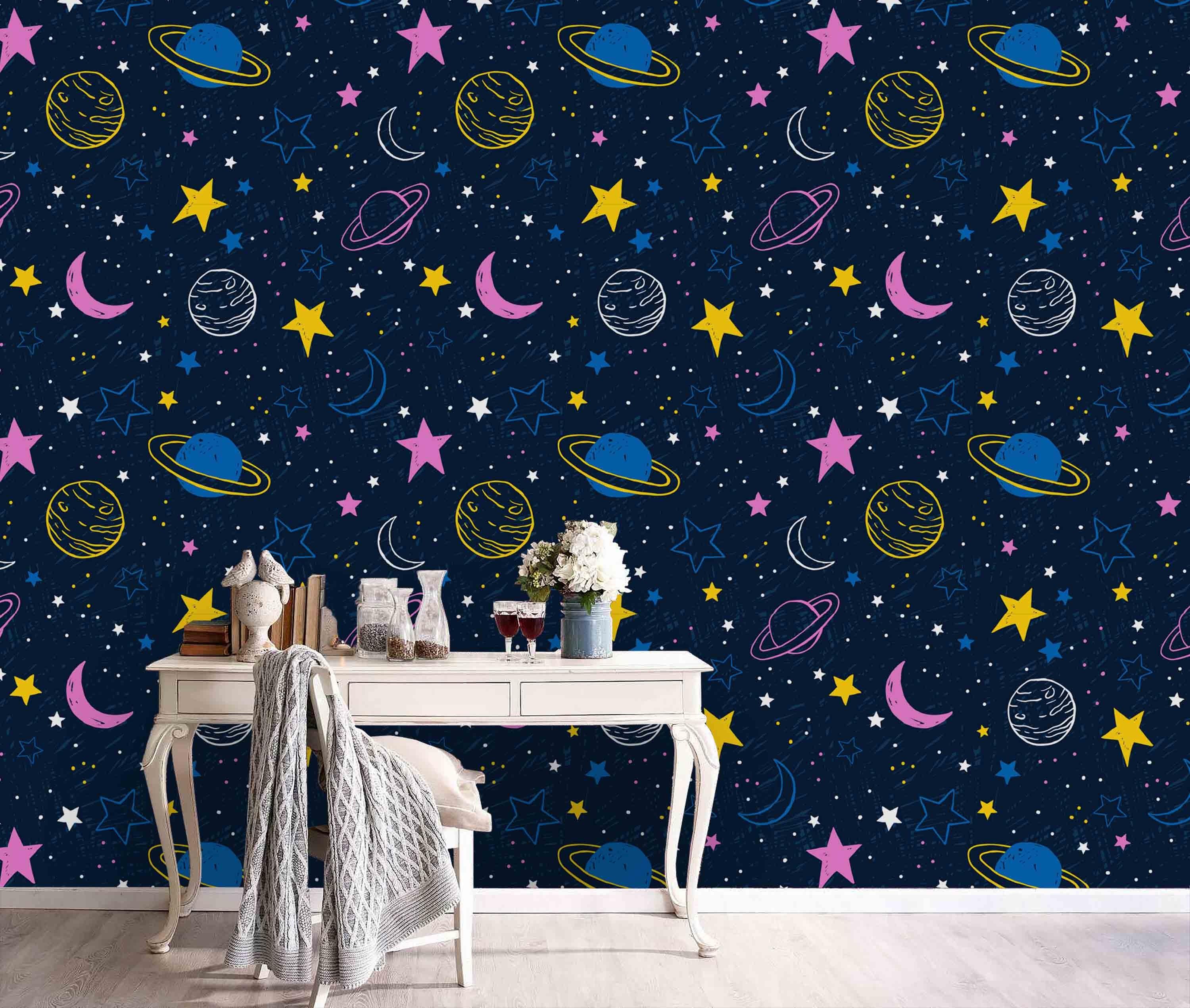 3D Moon Star Planet Wall Mural Wallpaper 82