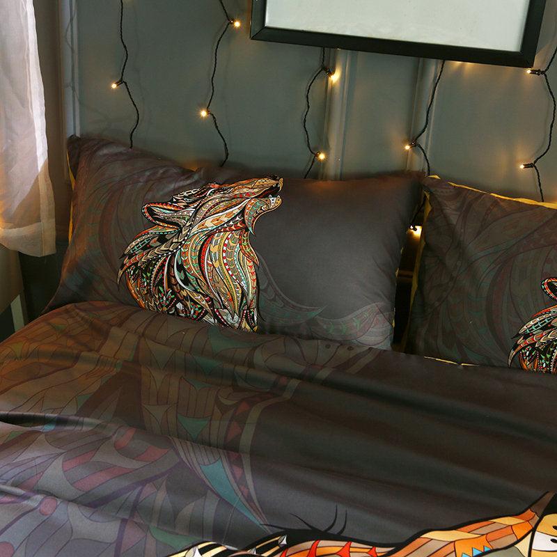 3D National Style Wolf Bedding Set Quilt Cover Quilt Duvet Cover ,Pillowcases Personalized Bedding,Queen, King ,Full, Double 3 Pcs