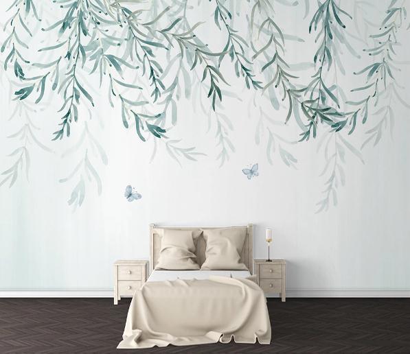 3D Nordic Hand drawing Fresh Leaves Wall Mural Wallpaperpe 274