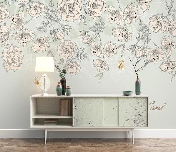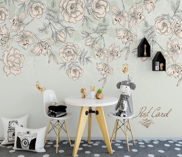 3D Nordic Simplicity Hand drawing Flowers Wall Mural Wallpaperpe 168