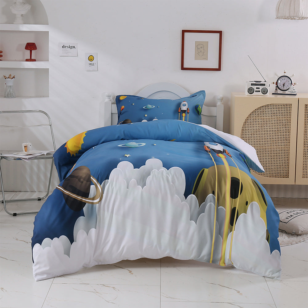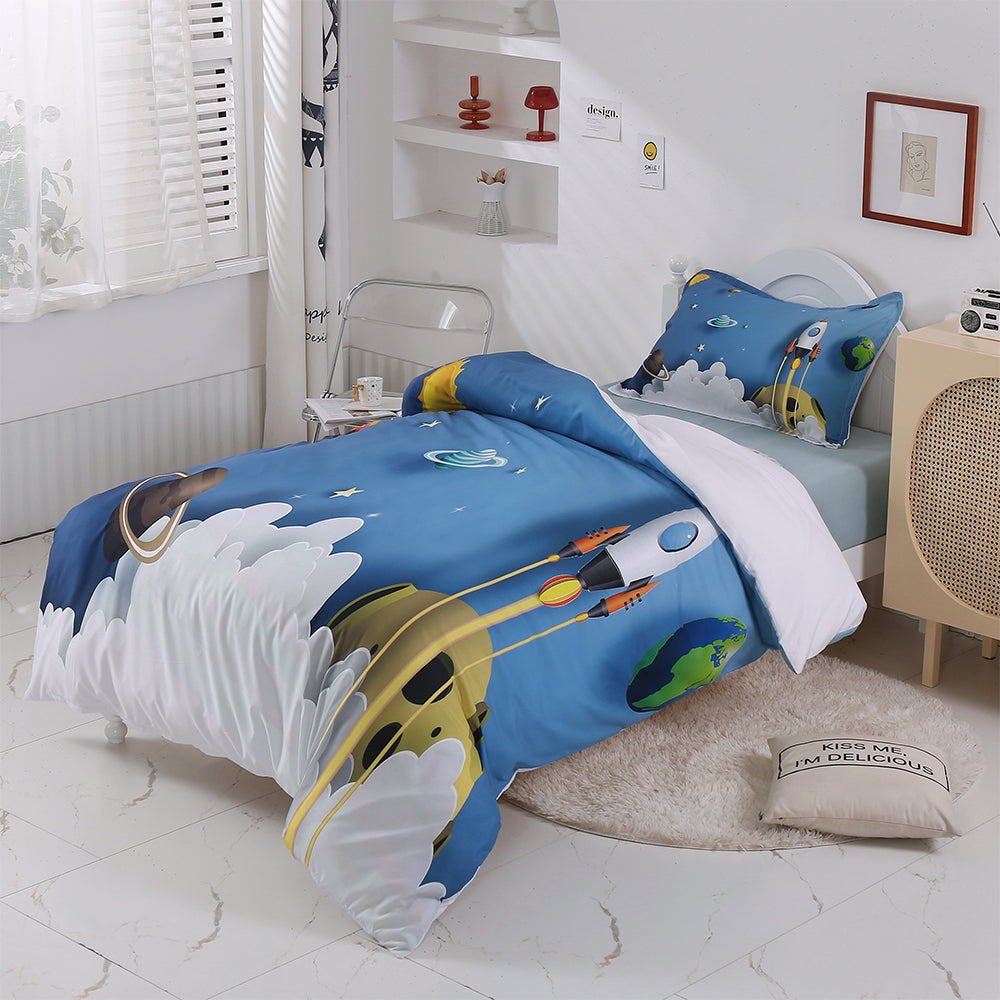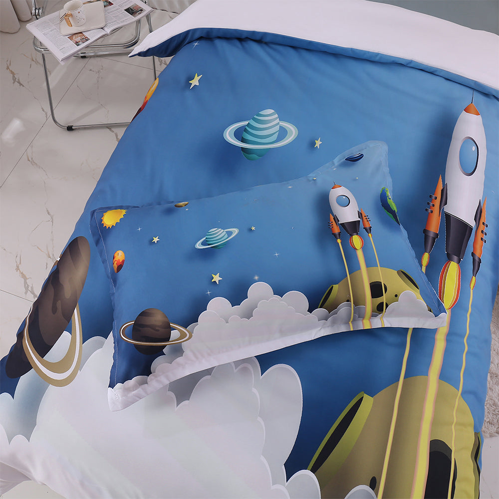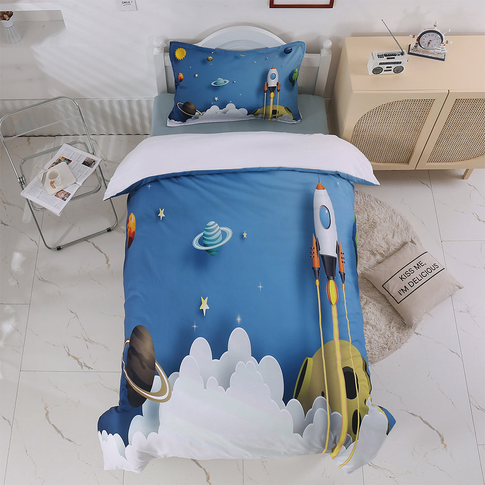 3D Outer Space Rocket Planet Blue Quilt Cover Set Bedding Set Duvet Cover Pillowcases 349