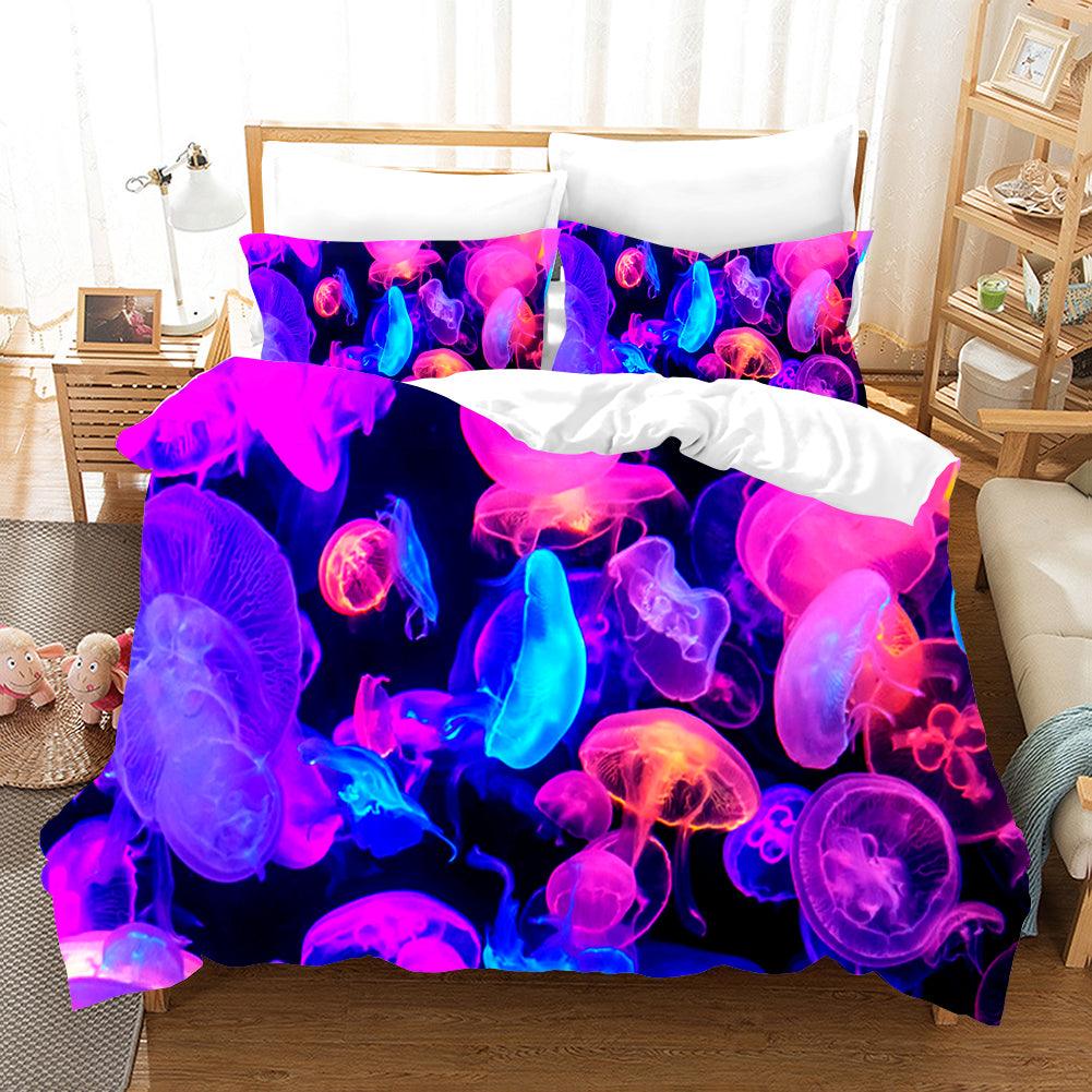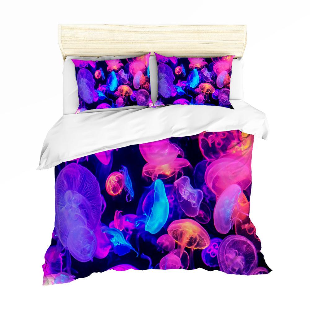 3D Pink Blue Purple Jellyfish Quilt Cover Set Bedding Set Pillowcases 55