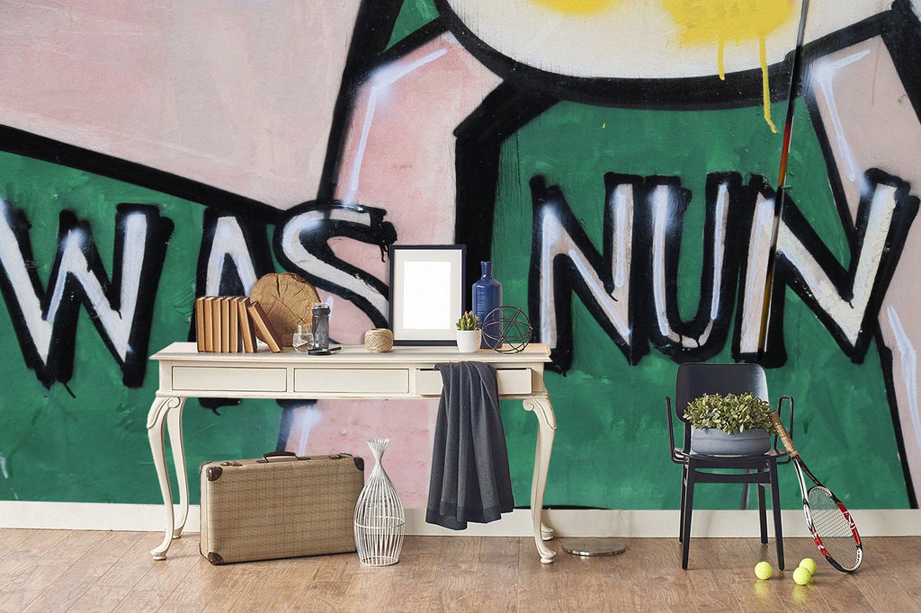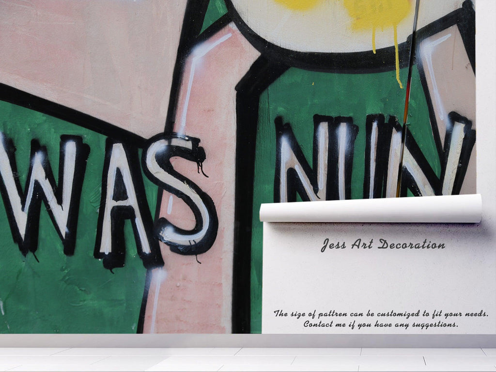 3D Pink Brick Green Slogan Wall Mural Wallpaper 113
