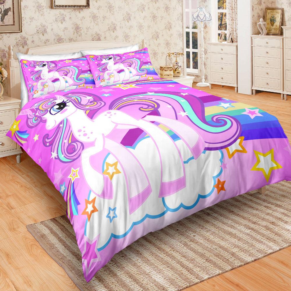 3D Pink Cartoon The unicorn Quilt Cover Set Bedding Set Pillowcases