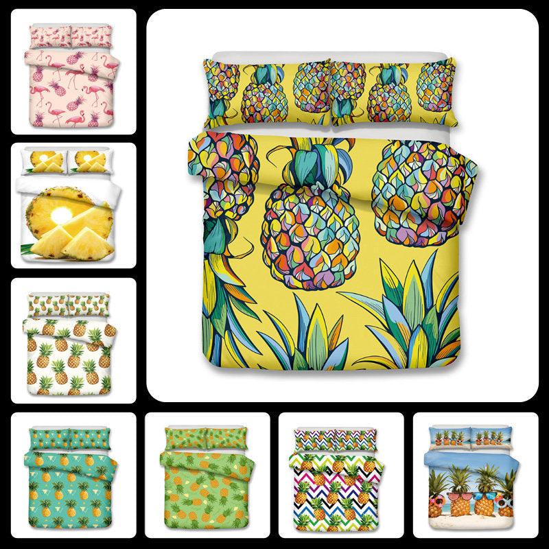 3D Pink Flamingo Pineapple Bedding Set Quilt Cover Quilt Duvet Cover ,Pillowcases Personalized Bedding,Queen, King ,Full, Double 3 Pcs