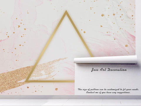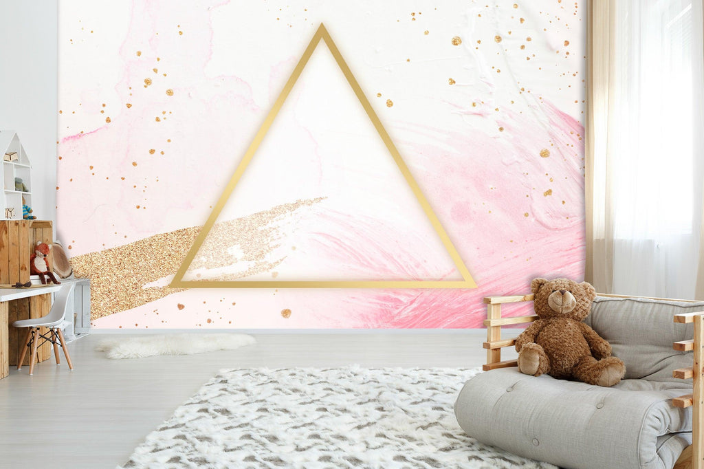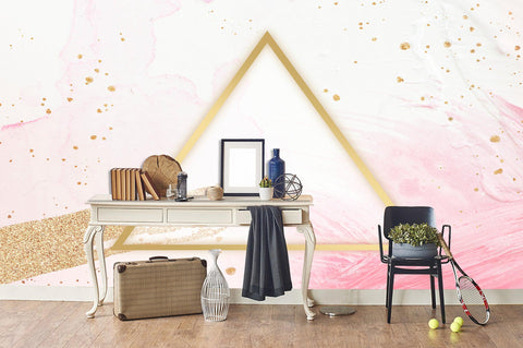 3D Pink Marble Golden Triangle Wall Mural Wallpaper 21