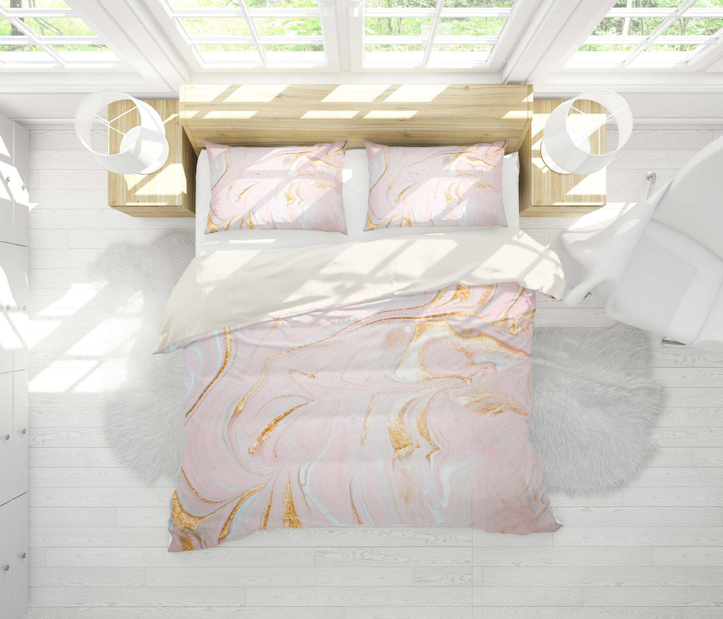 3D Pink-tones, marbled Bedding Set Quilt Cover Quilt Duvet Cover ,Pillowcases Personalized Bedding,Queen, King ,Full, Double 3 Pcs
