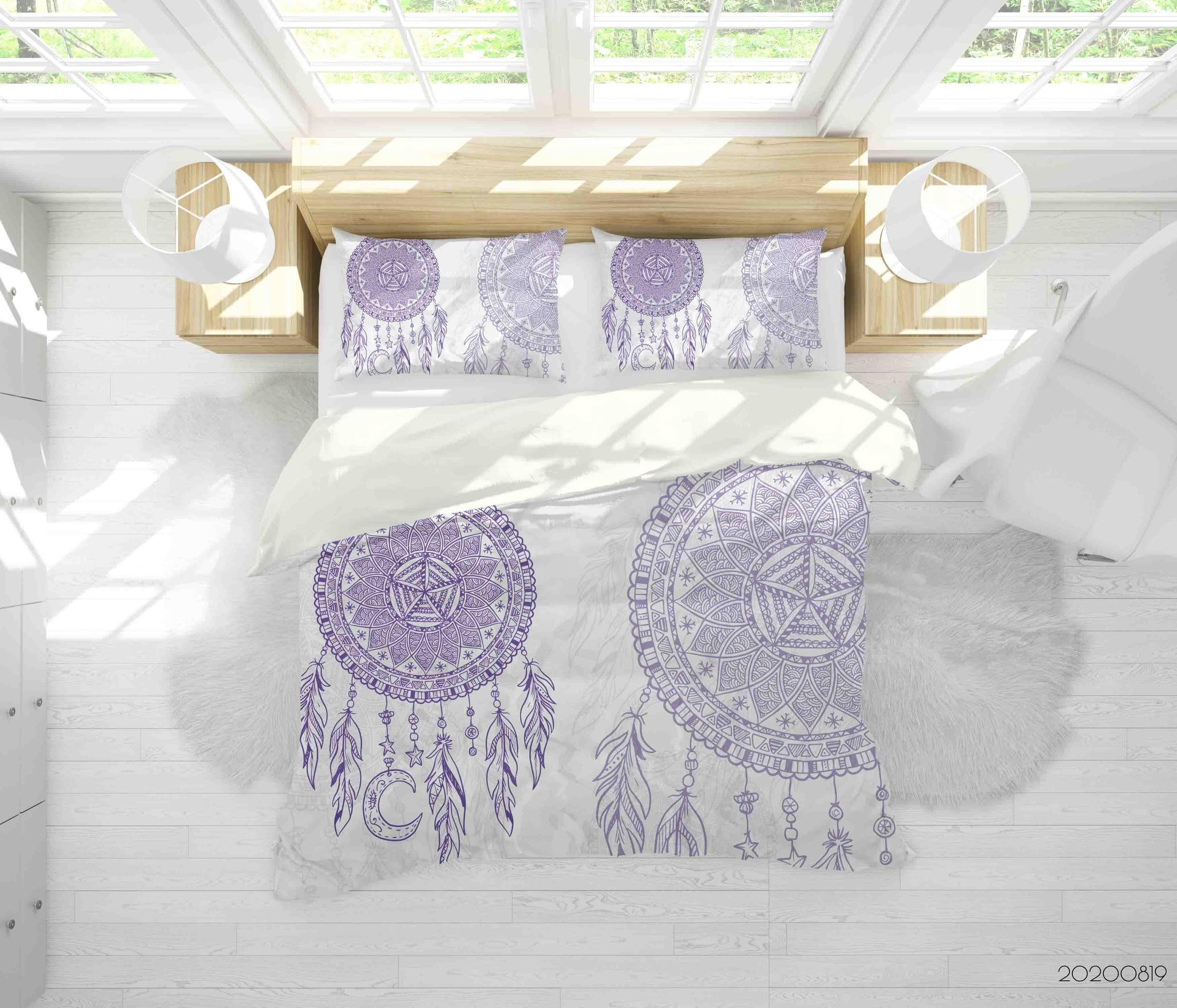 3D Purple Feather Dreamcatcher Quilt Cover Set Bedding Set Duvet Cover Pillowcases LXL