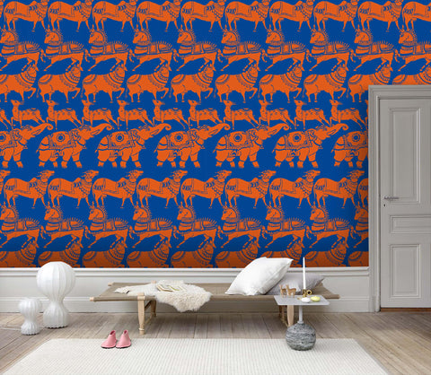 3D Red Animal Elephant Horse Wall Mural Wallpaper 05
