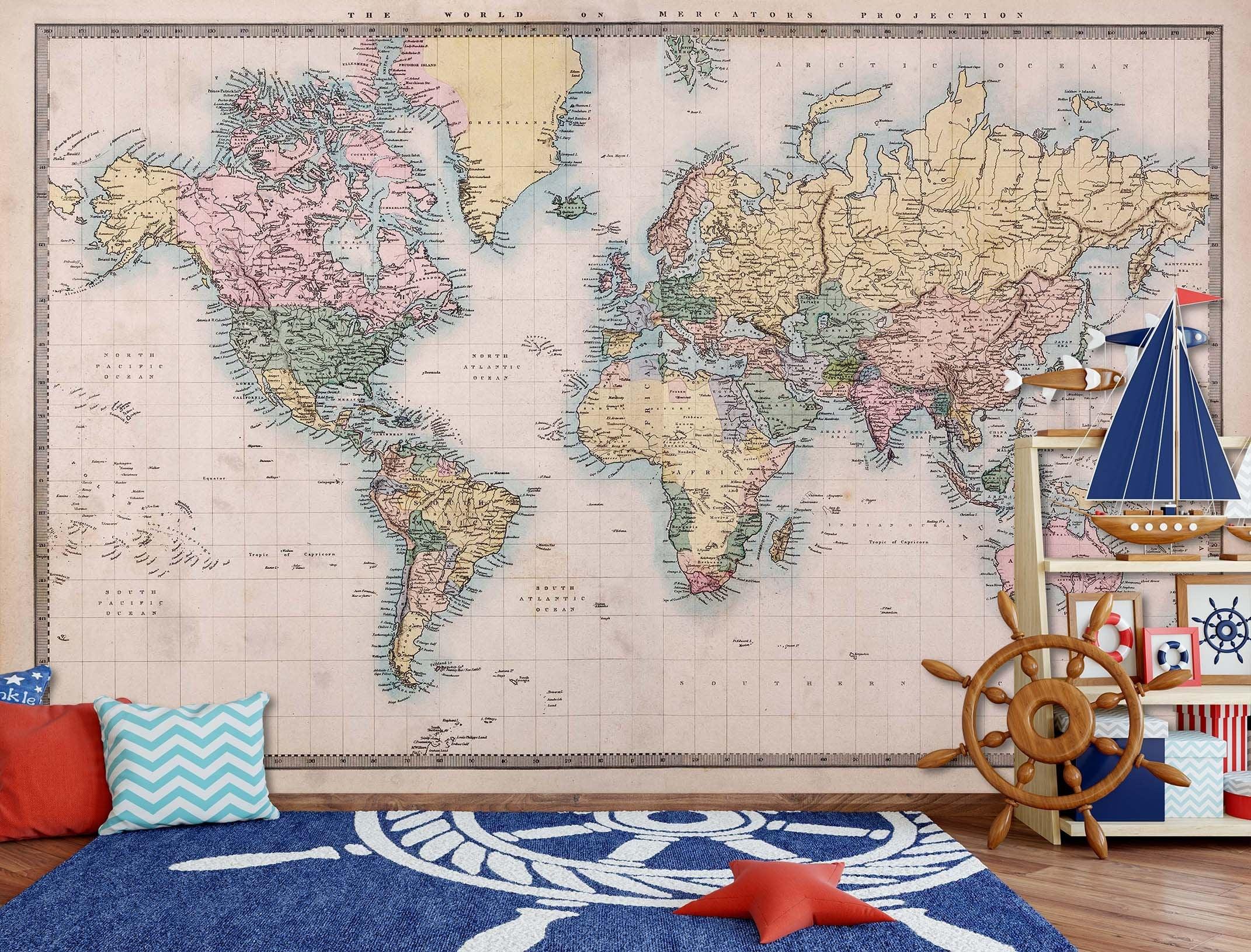 3D retro world map 121 wall murals