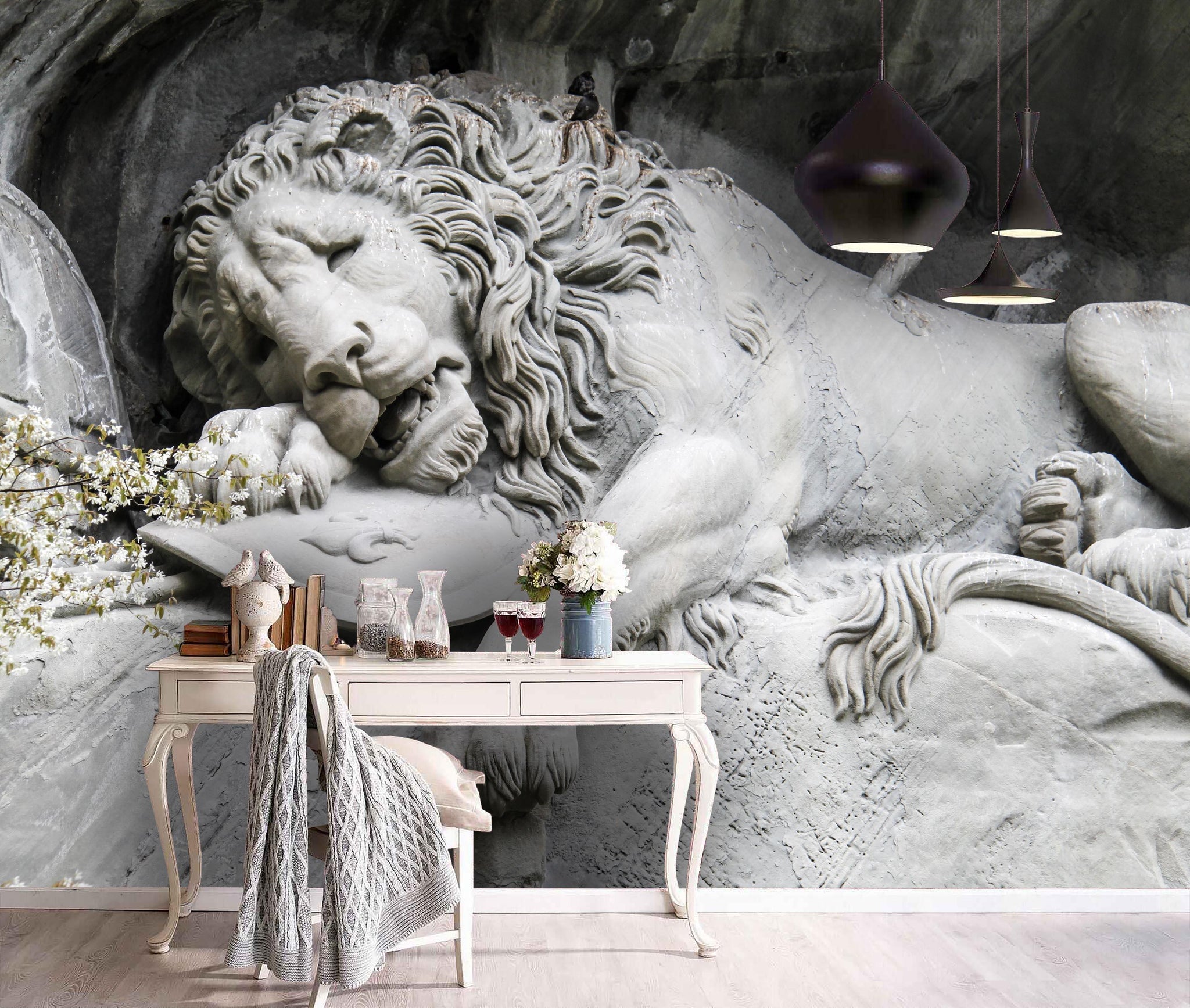 3D Sculpture Lion Wall Mural Wallpaper LQH 91