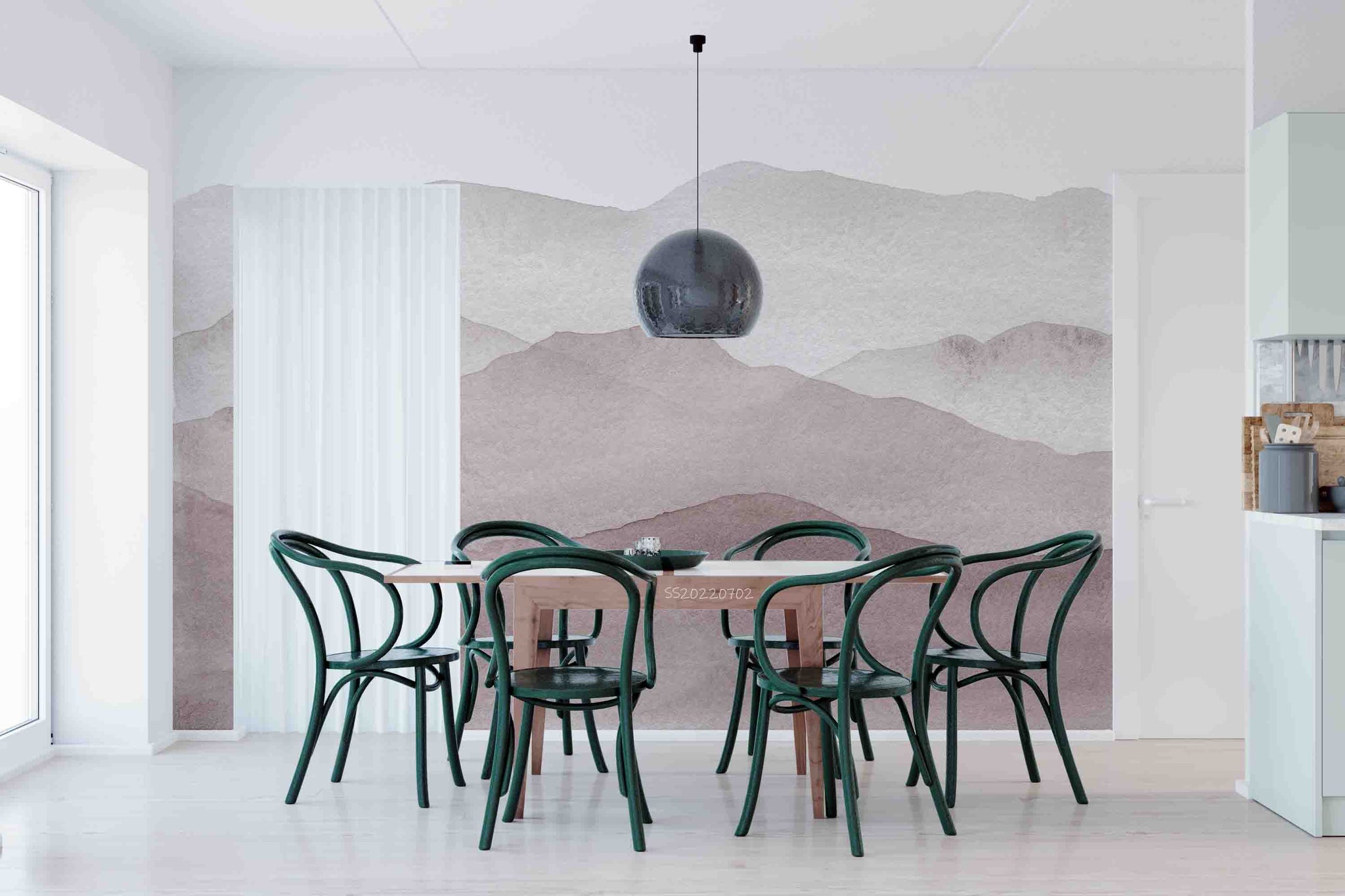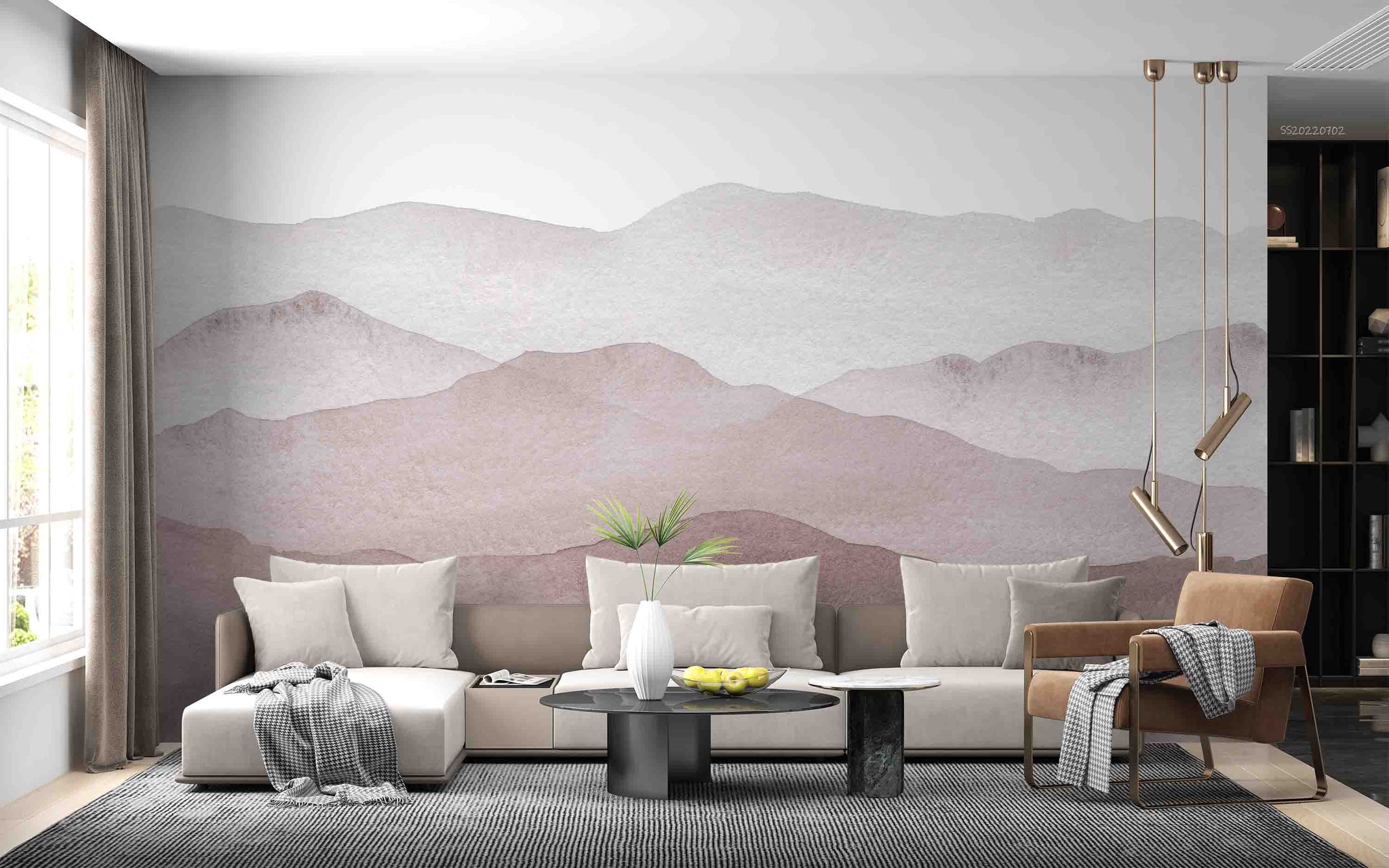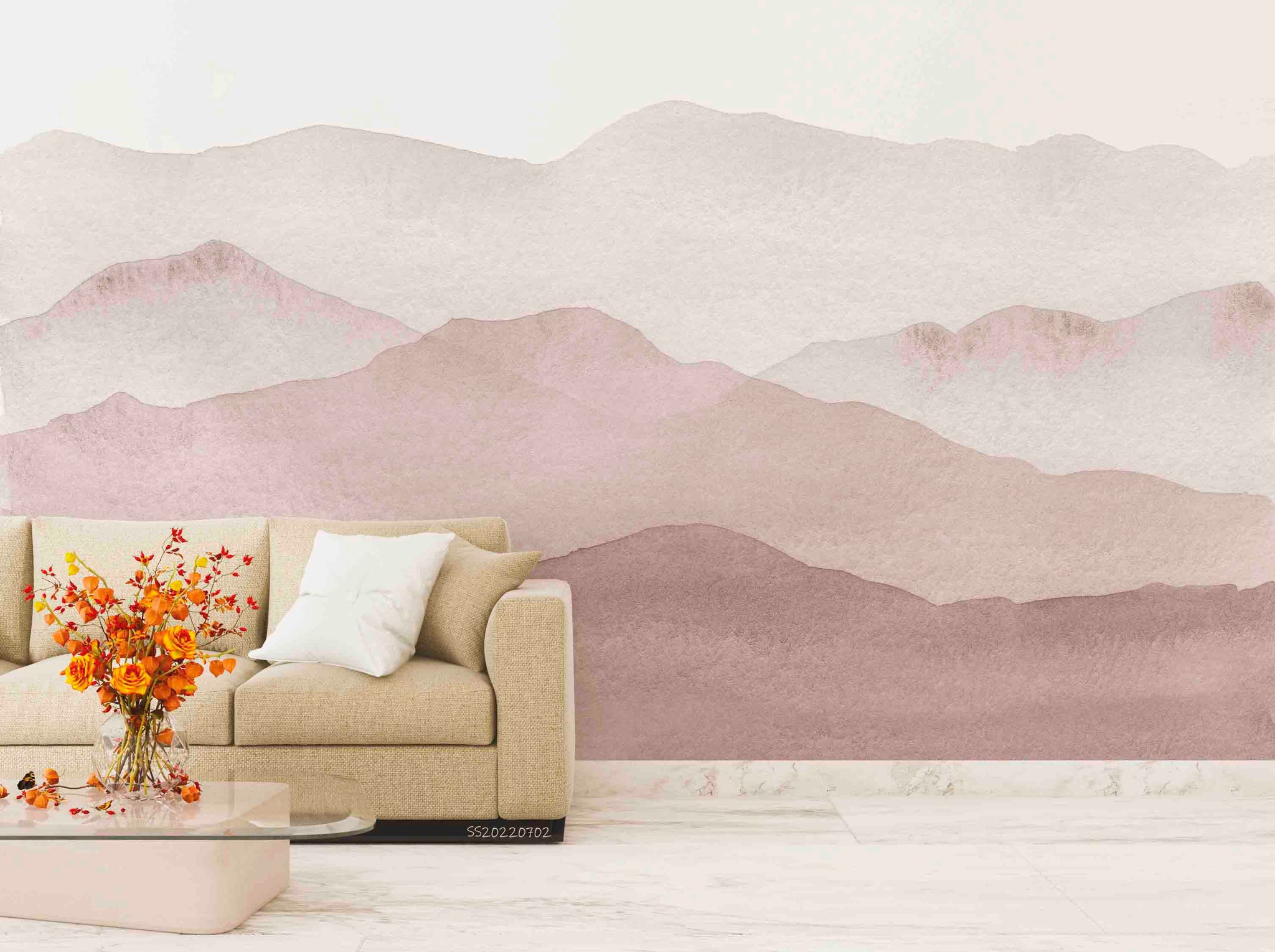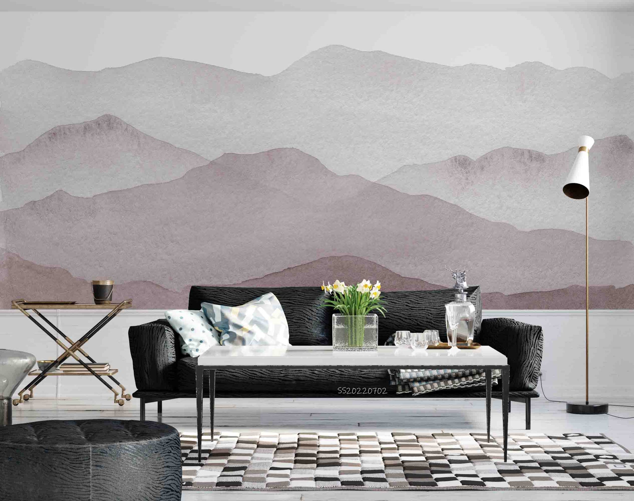 3D Sepia Watercolor Mountain Fog Scenery Wall Mural Wallpaper GD 5085