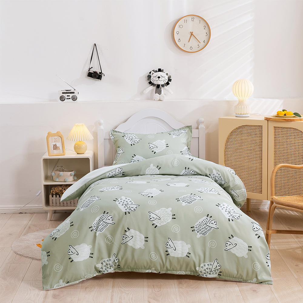 3D Sheep Light Green Cartoon Pattern Quilt Cover Set Bedding Set Duvet Cover Pillowcases 315