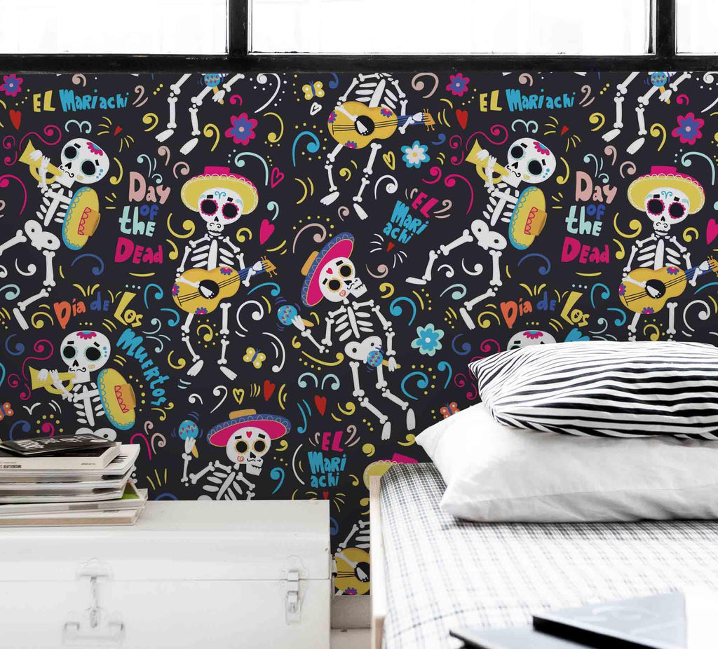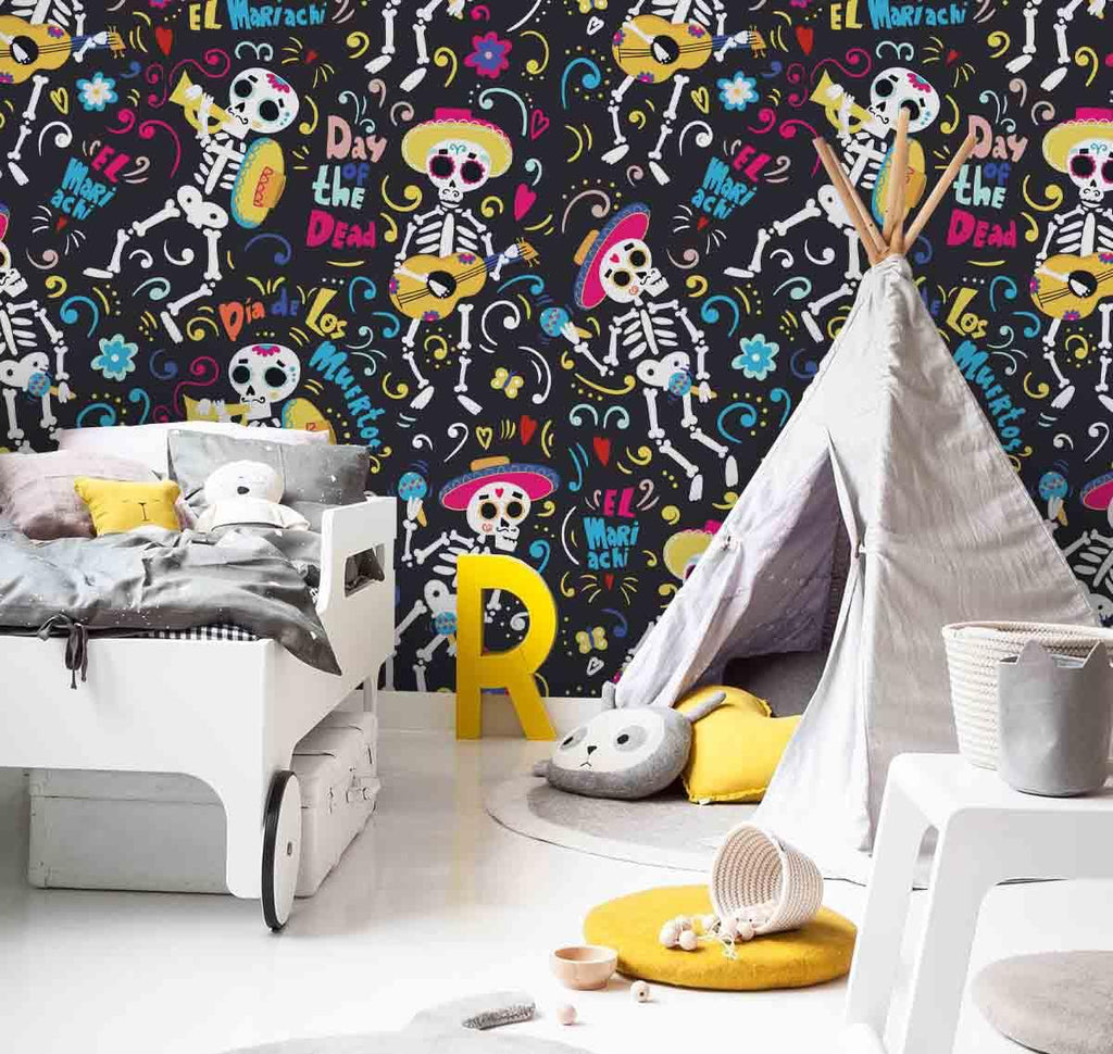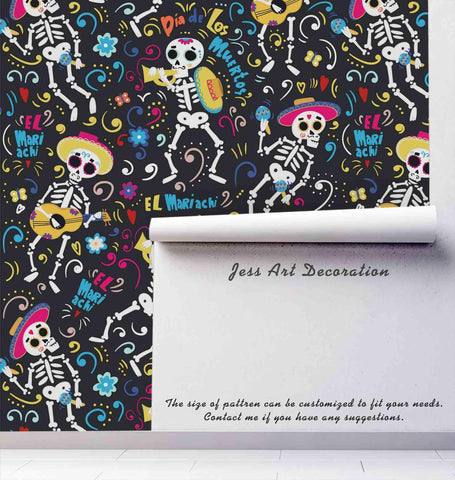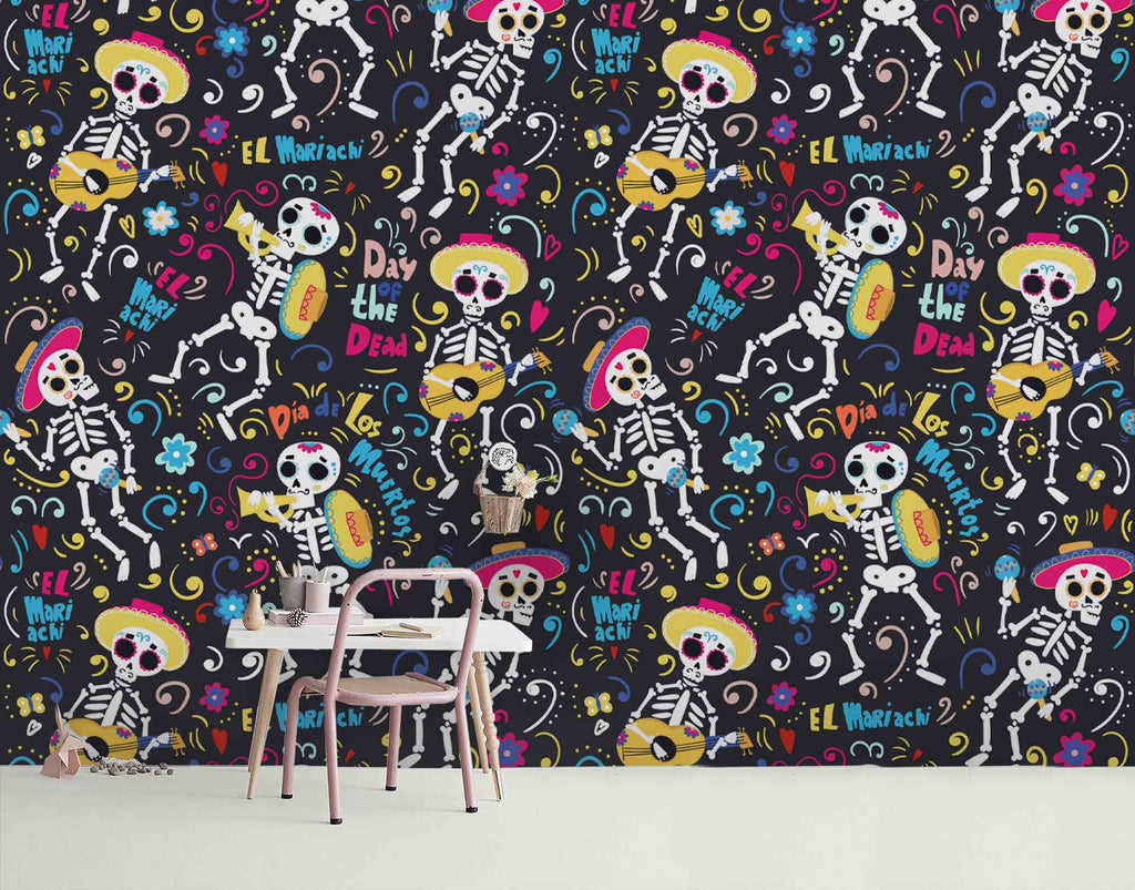 3D Skull Skeleton Guitar Wall Mural Wallpaper 78