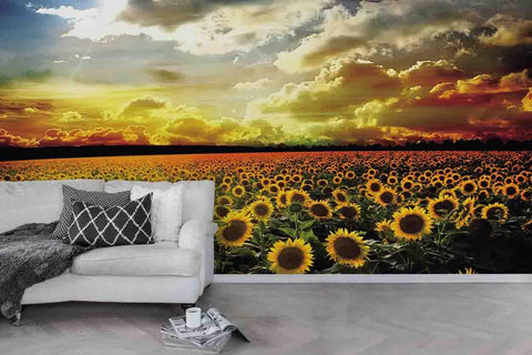 3D Sunflower Field Sky Clouds Wall Mural Wallpaper 117