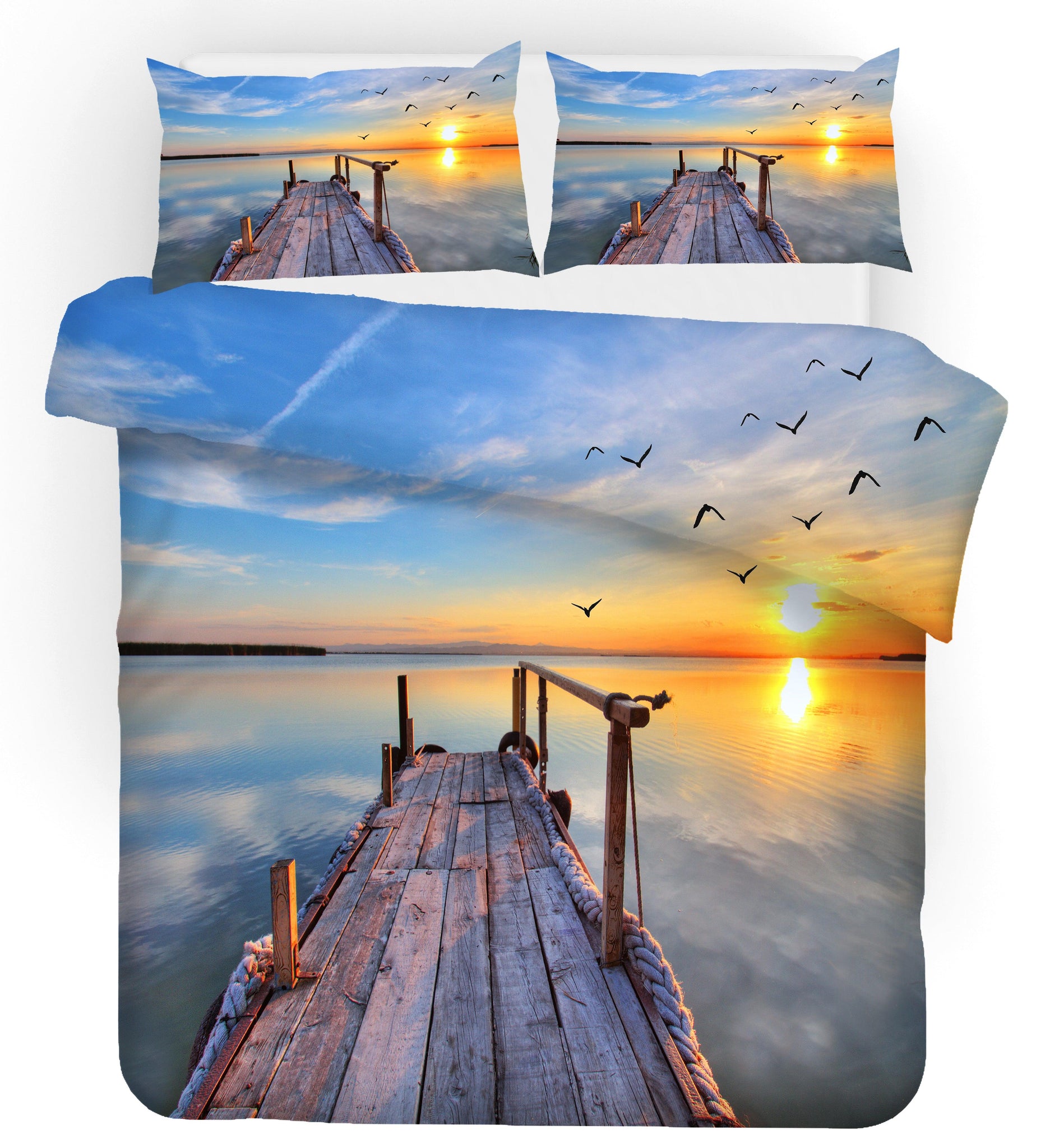 3D Sunrise Trestle Bridge Seagull Landscape Quilt Cover Set Bedding Set Pillowcases 109