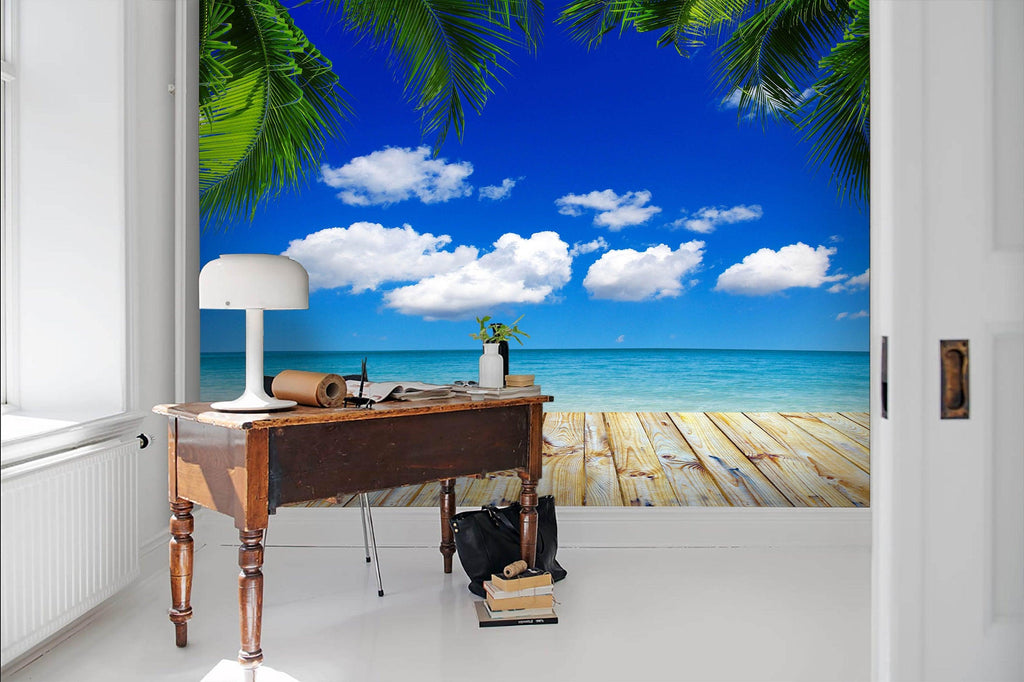 3D Tropical scenery, Seaside, Coconut tree Wallpaper