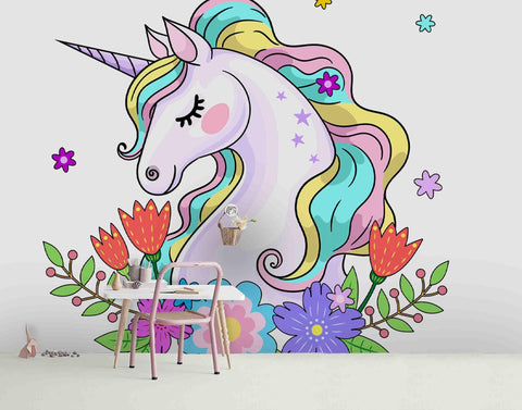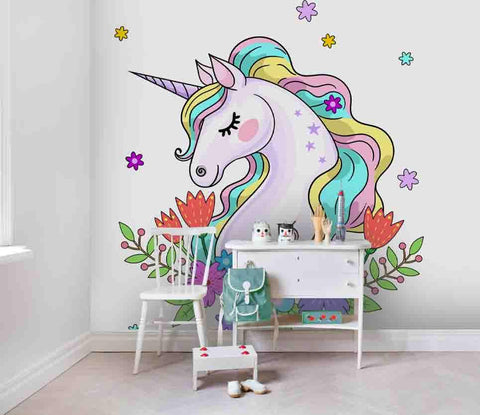 3D Unicorn Floral Wall Mural Wallpaper 99