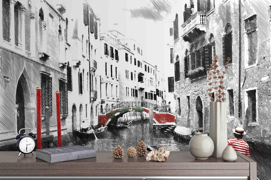 3D Venice Black White Mural Removable Wallpaper,Peel & stick Wall Mural, Wall Art,Wall Decal,Kids,Nursery,Wall Sticker,Jess Art 42