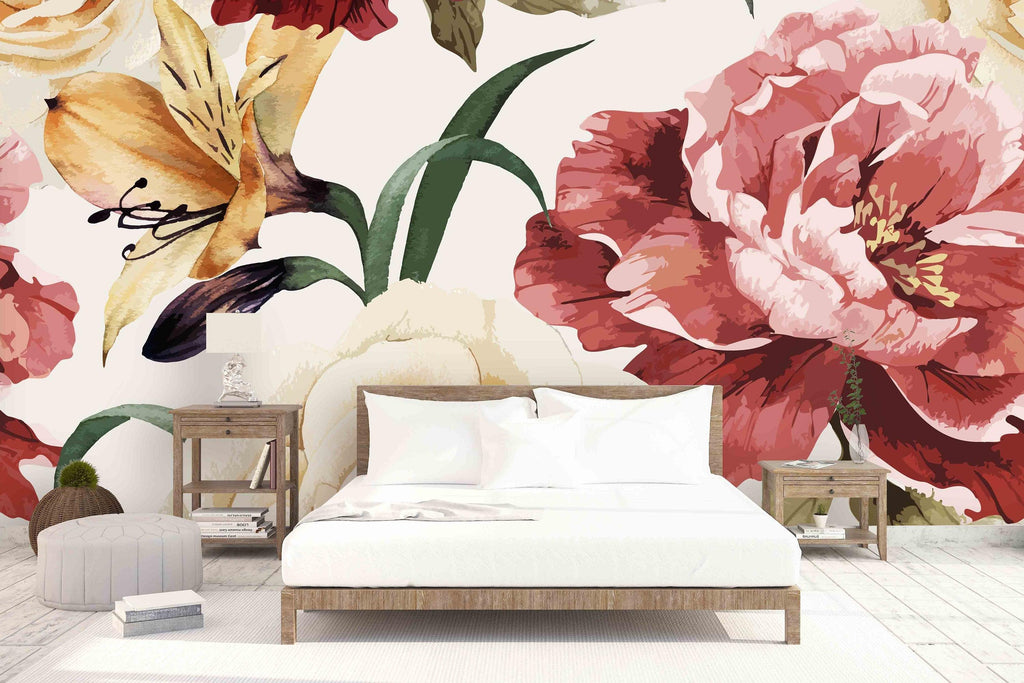 3D Warm Watercolor Floral Removable Wallpaper,Peel & stick Wall Mural, Floral, Wall Art,Wall Decal,Wall Sticker,Jess Art 42