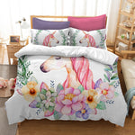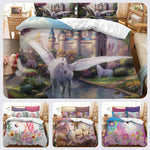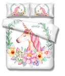 3D White Cartoon Kids Flower Unicorn Bedding Set Quilt Duvet Cover ,Pillowcases Personalized Bedding,Queen, King ,Full, Double 3 Pcs