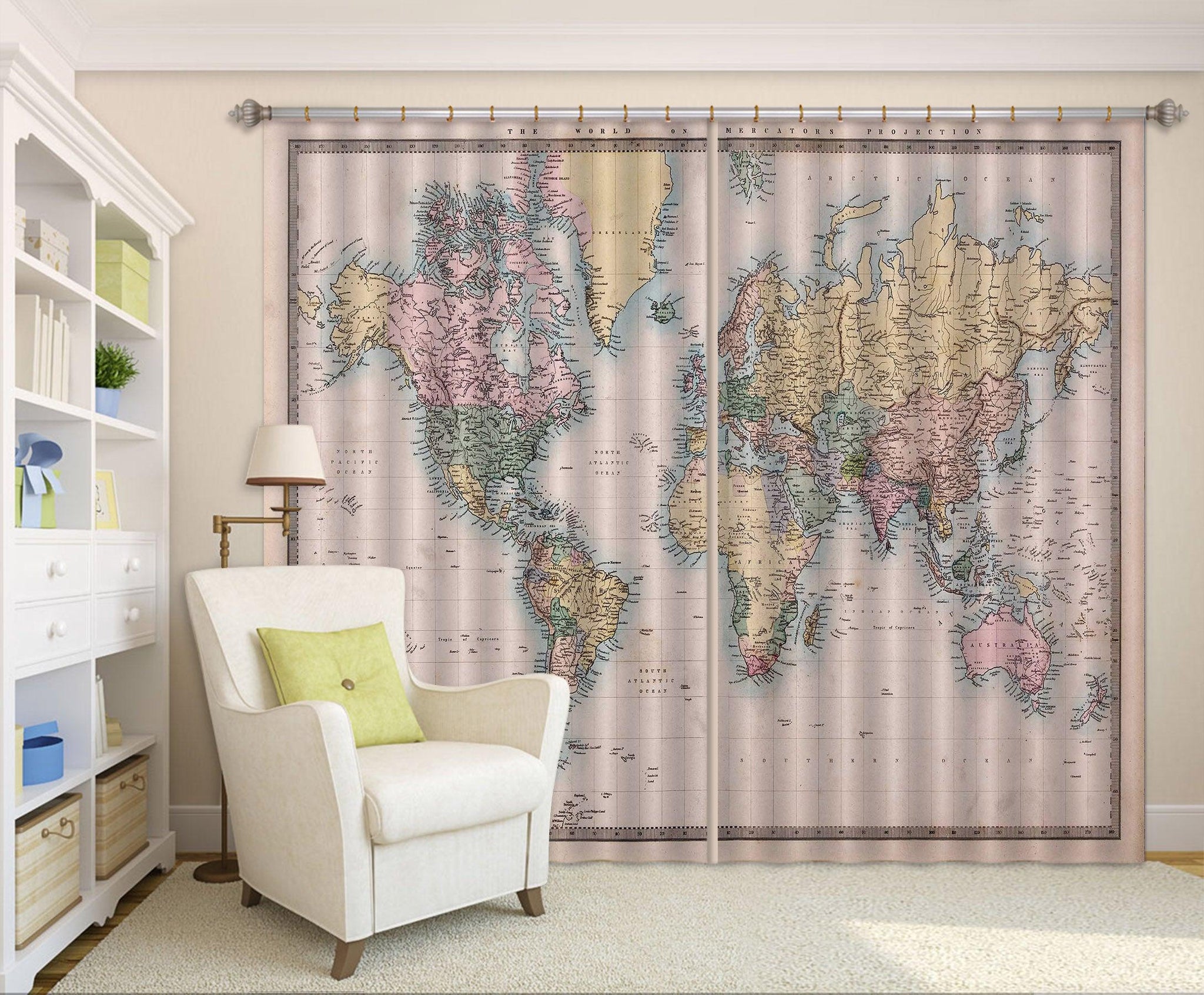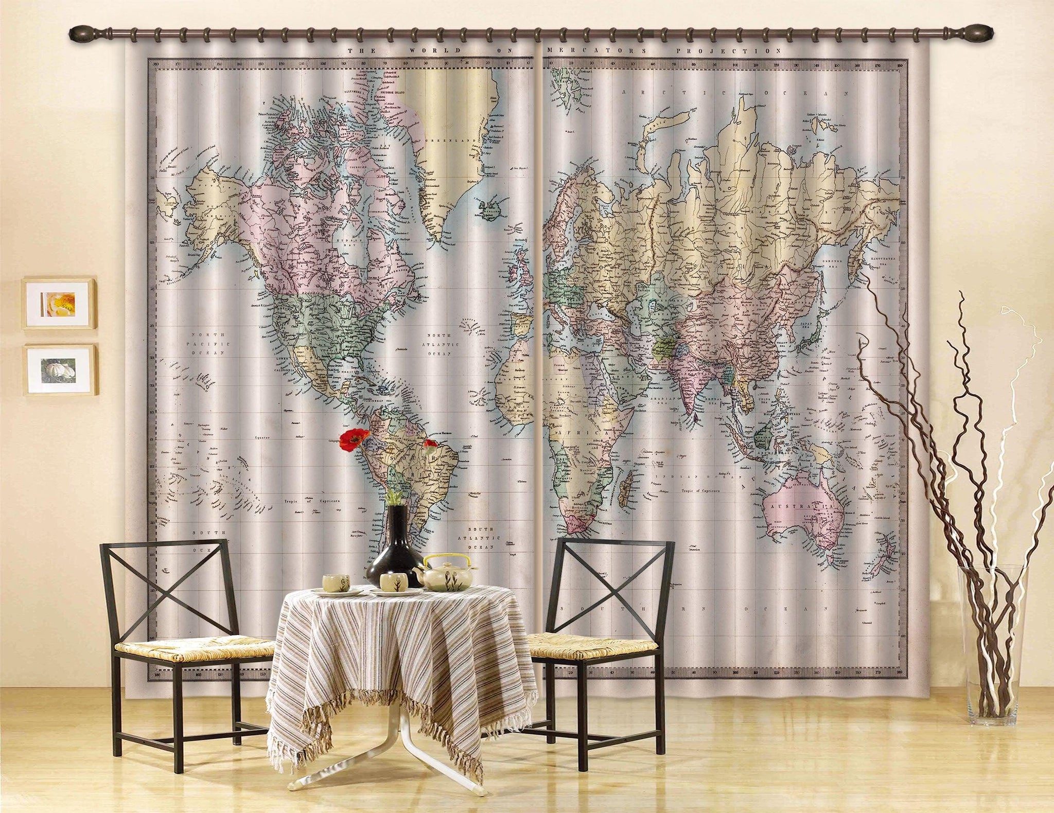3D World Map Curtains and Drapes A100