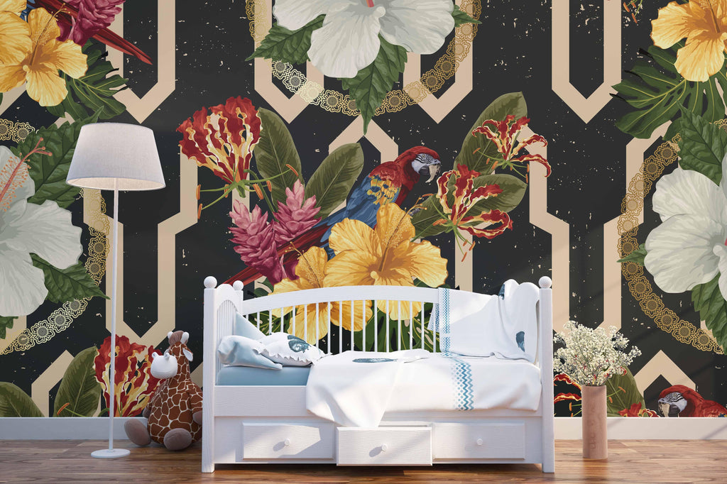 3D Yellow Flower Parrot Wall Mural Wallpaper 7